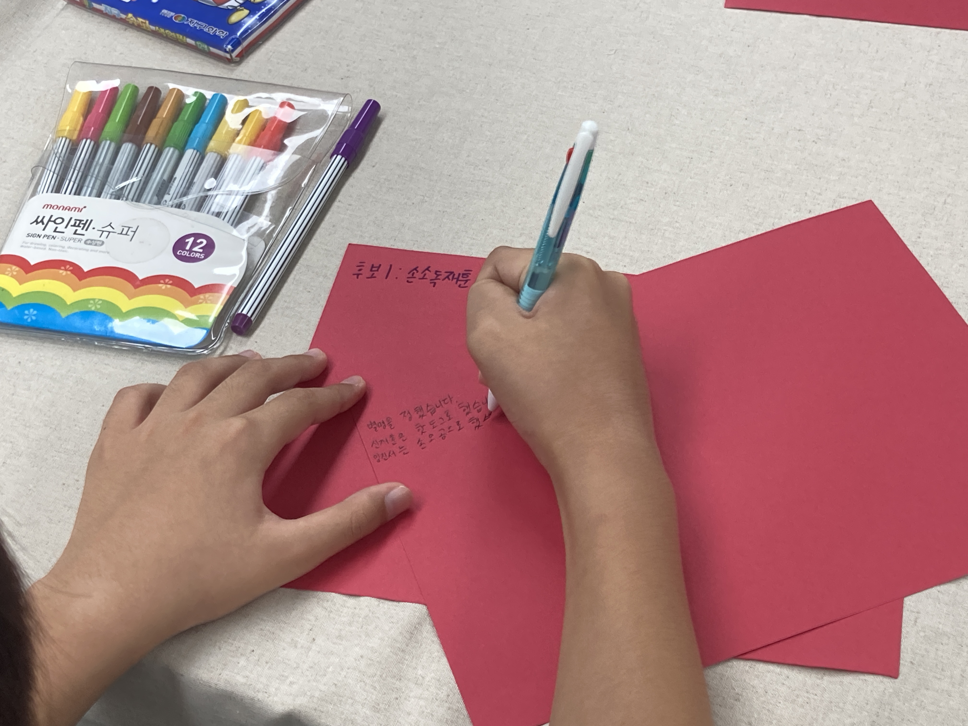 펜과 펜 뚜껑 짝이 안 맞는 것도 다시 바꿔 끼워줬습니다. 어쩜 이렇게 세심할까요.