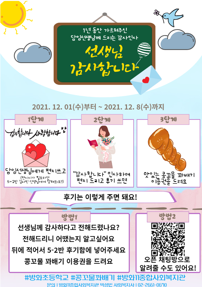 선생님께 가정통신문에 안내지를 같이 발송해달라고 부탁드렸습니다.
