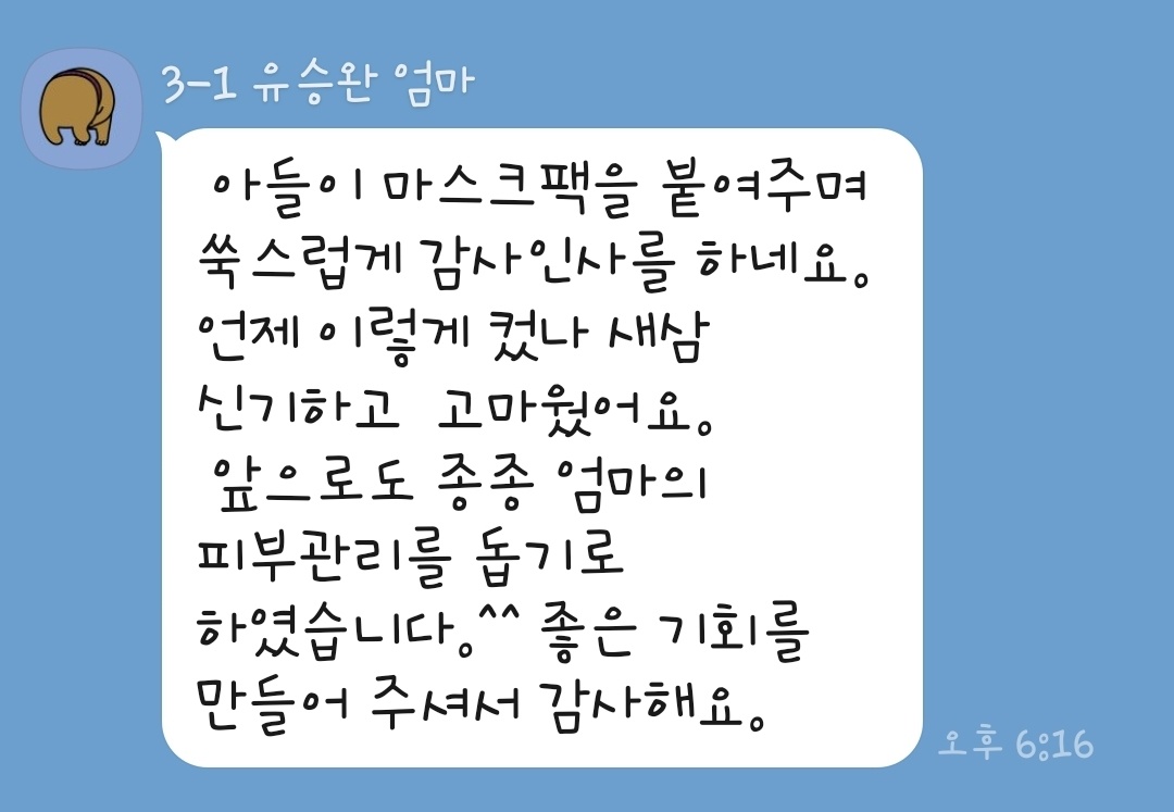 전교생이 후기를 보내주지 않았어도 학생들이 마스크팩을 보고