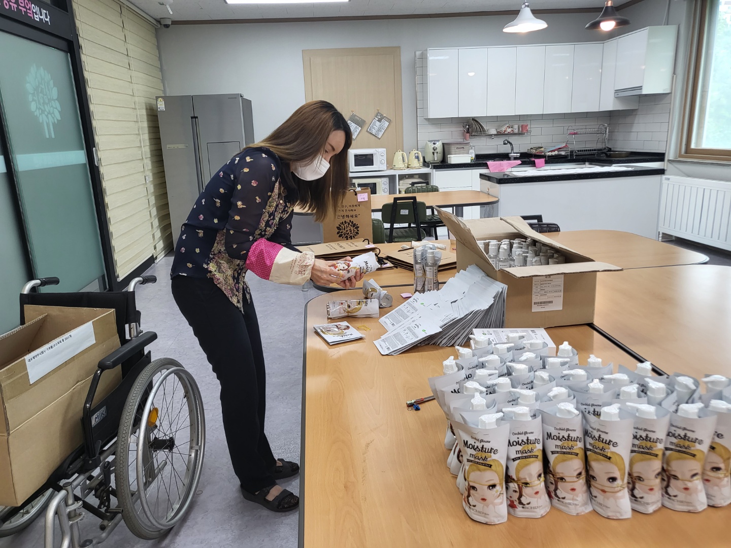 사회복무요원과 함께 마스크팩 인사캠페인 키트를 만들어 안내지와 함께