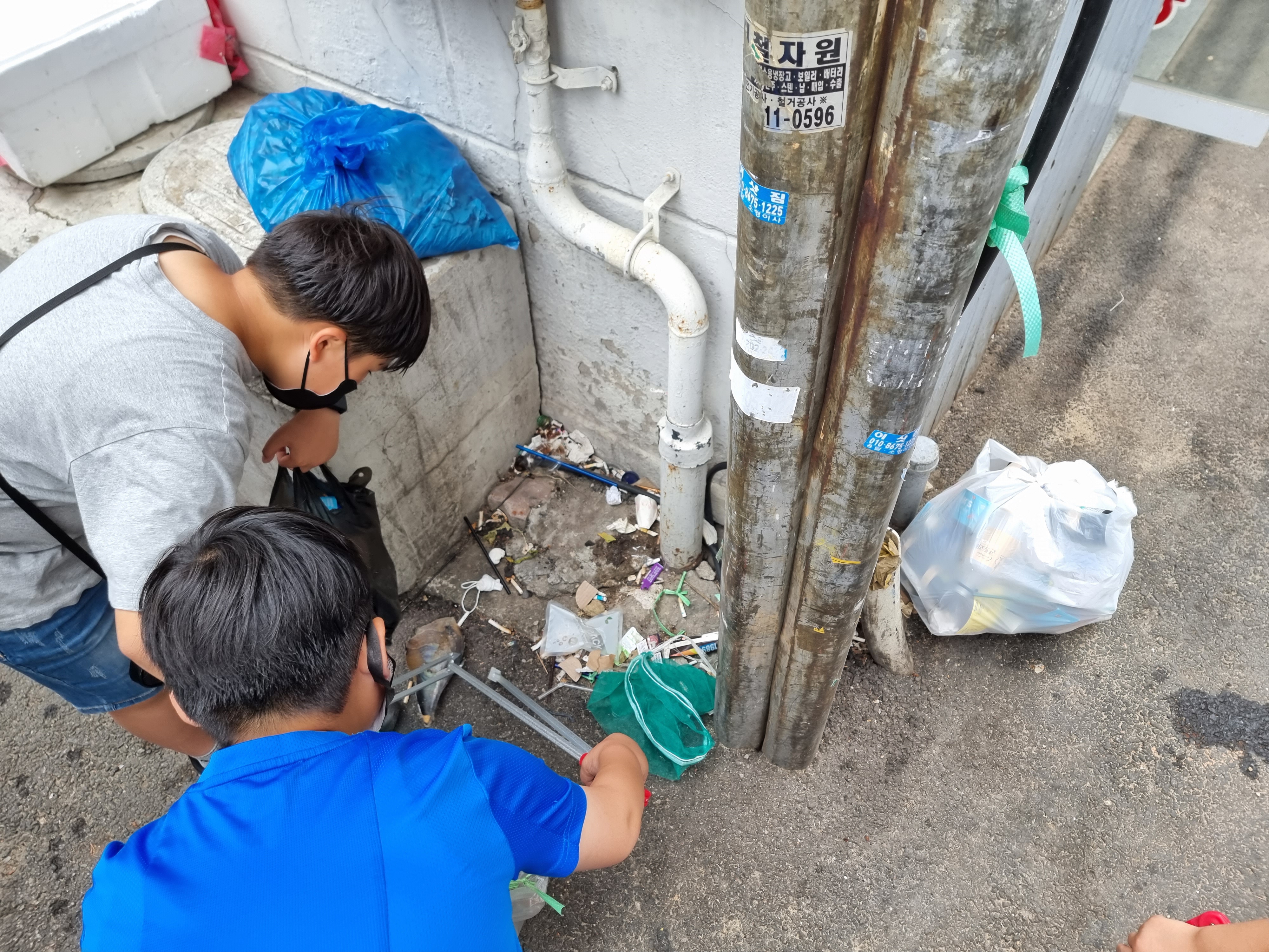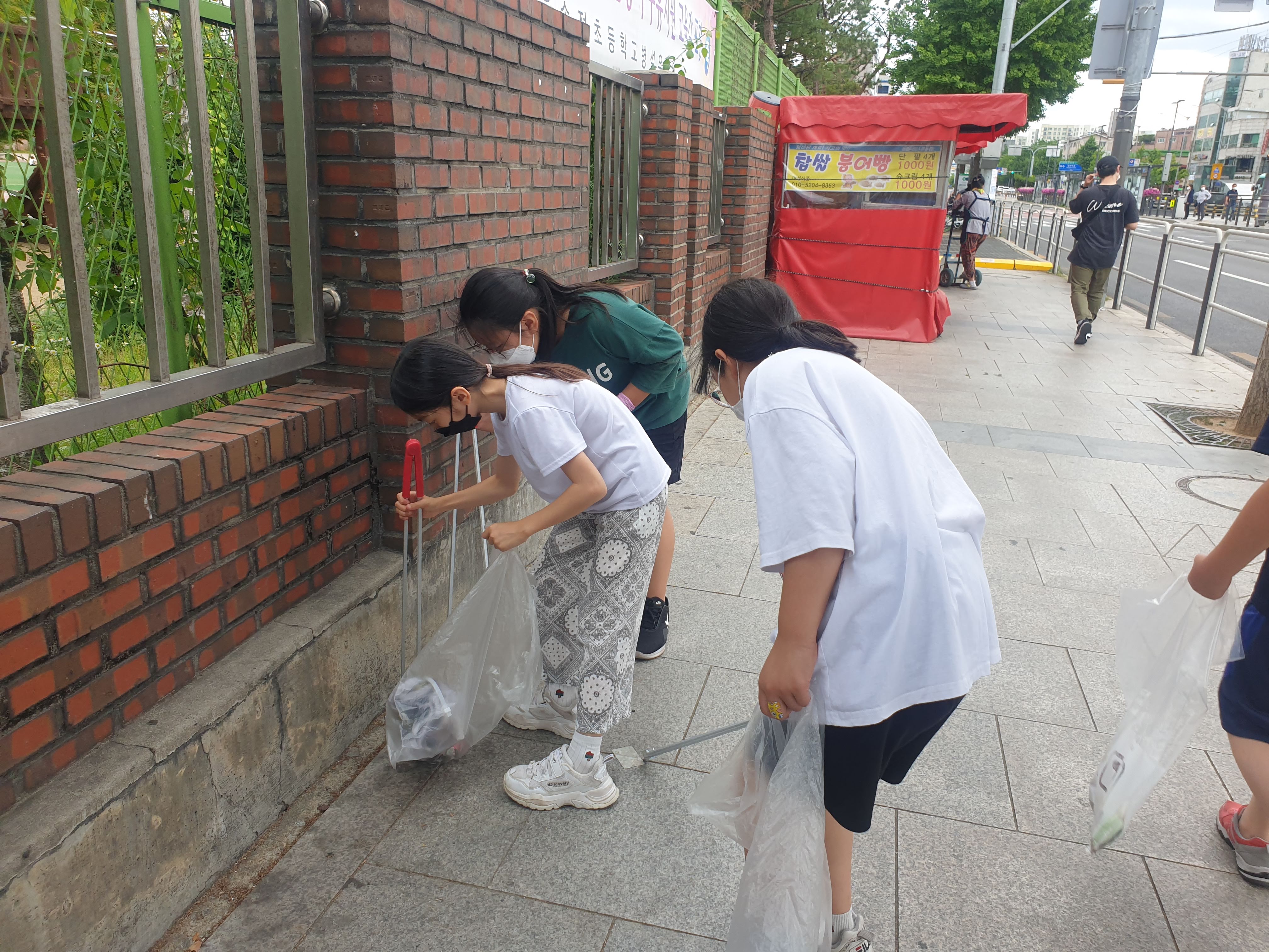 학교 안에 쓰레기는 생각보다 부피가 작고 많이 없었습니다. 학교 밖에 나가기로 했습니다. 두 팀으로 나누었습니다. 한 팀은 송정역 주변으로, 한 팀은 농협과 롯데리아 주변으로 가기로 했습니다. 쓰레기가 많습니다. 특히 담배꽁초가 많습니다. 어른들은 왜 담배꽁초를 길에 버리는지 속상했습니다. 땀을 뻘뻘 흘리며 열심히 청소했습니다. 길을 지나다가 칭찬해 주시는 어른들도 계셨습니다.