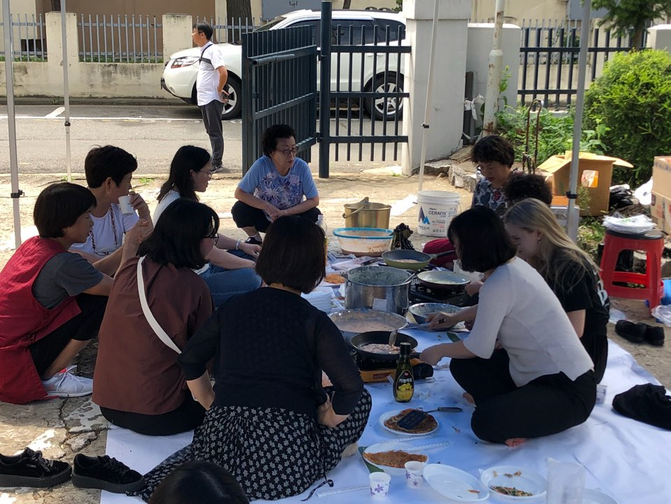 오고 가는 주민들 중 도와주시는 분도 계셨고, 맛있게 김치전, 부추전 드시고 가시는 어르신,