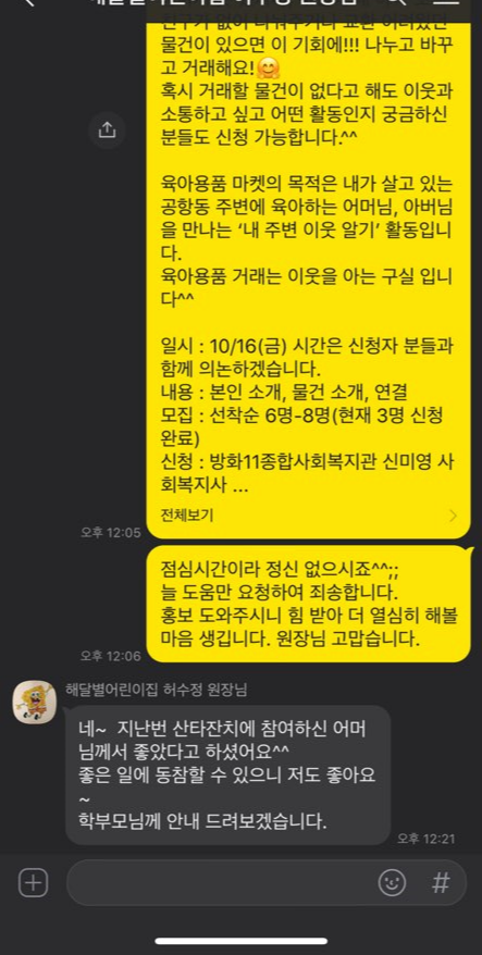 원장님들께서도 복지관에서 육아용품 온라인 마켓을 통해