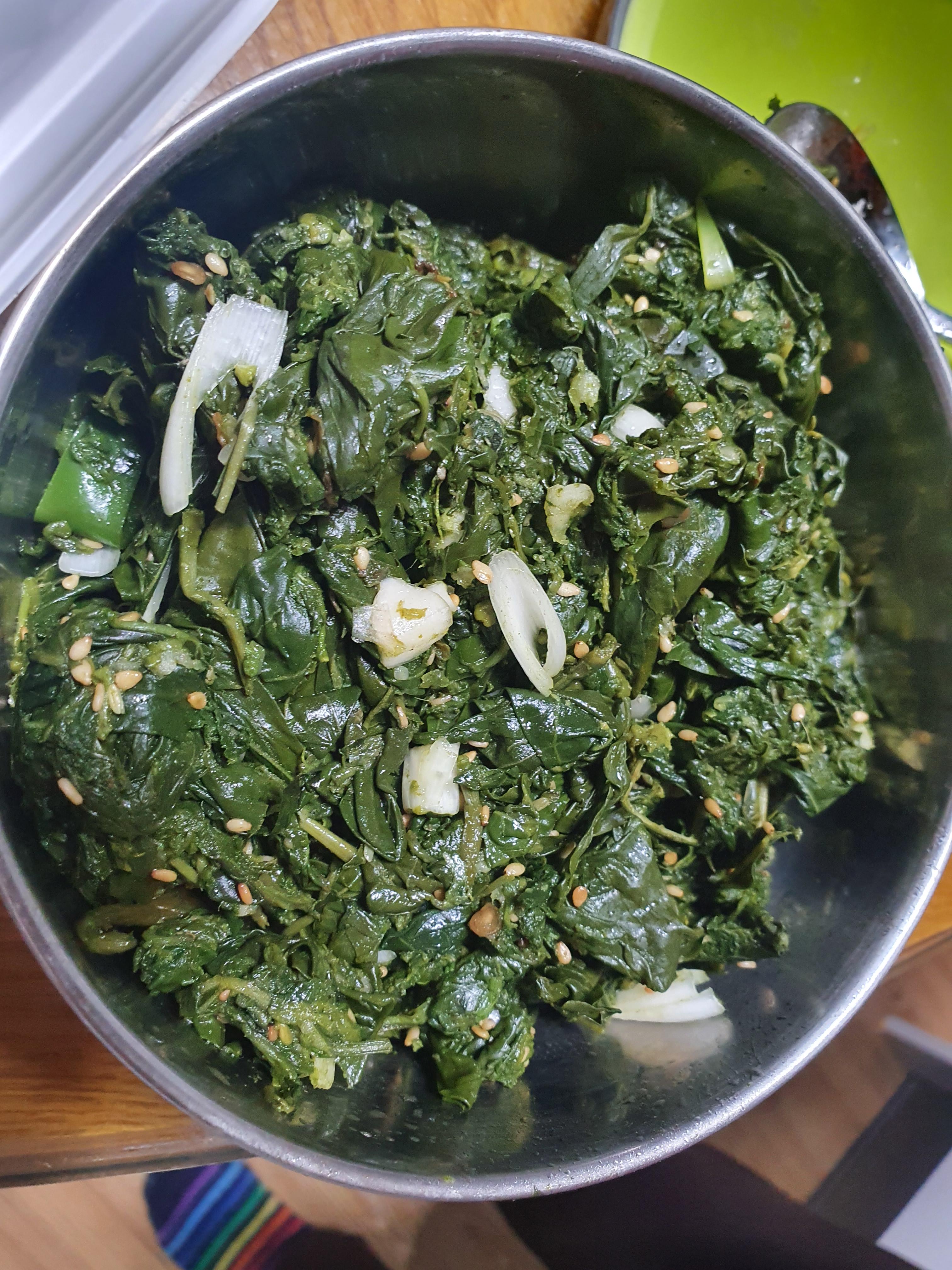 내가 먹으려고 무쳐놓은 나물이 있어요.