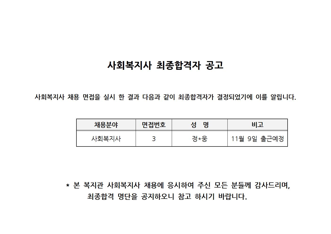 | 사회복지사 서류전형 합격자 공고 (0) | 2020.10.30 |