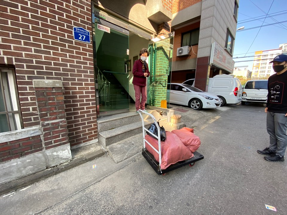 이영숙 님은 아침 일찍부터 배추를 전달하기 위해 기다리셨다고 합니다.