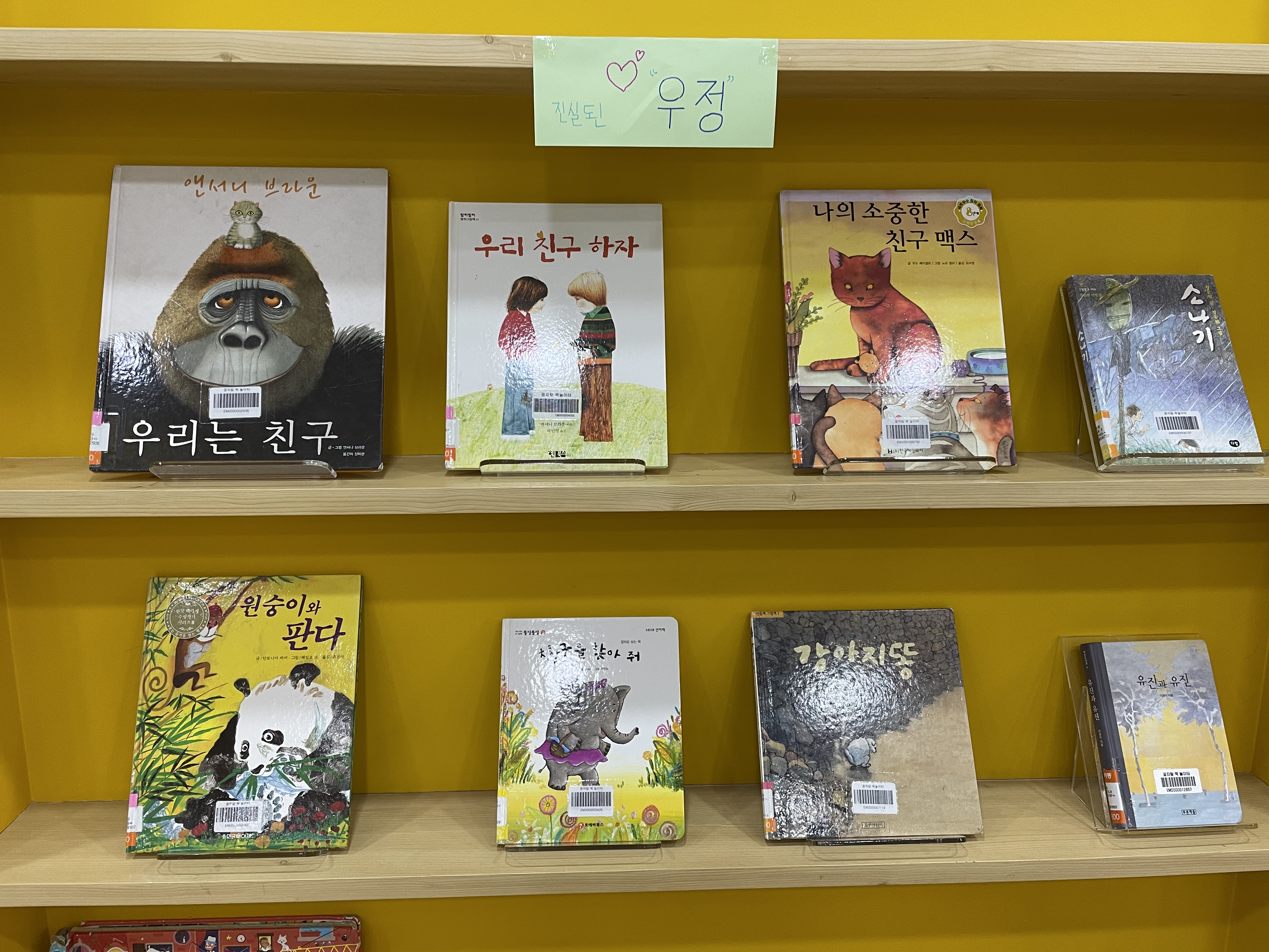 도서관을 찾는 친구들이 노란 서가를 힐끗 힐끗 보겠지요?