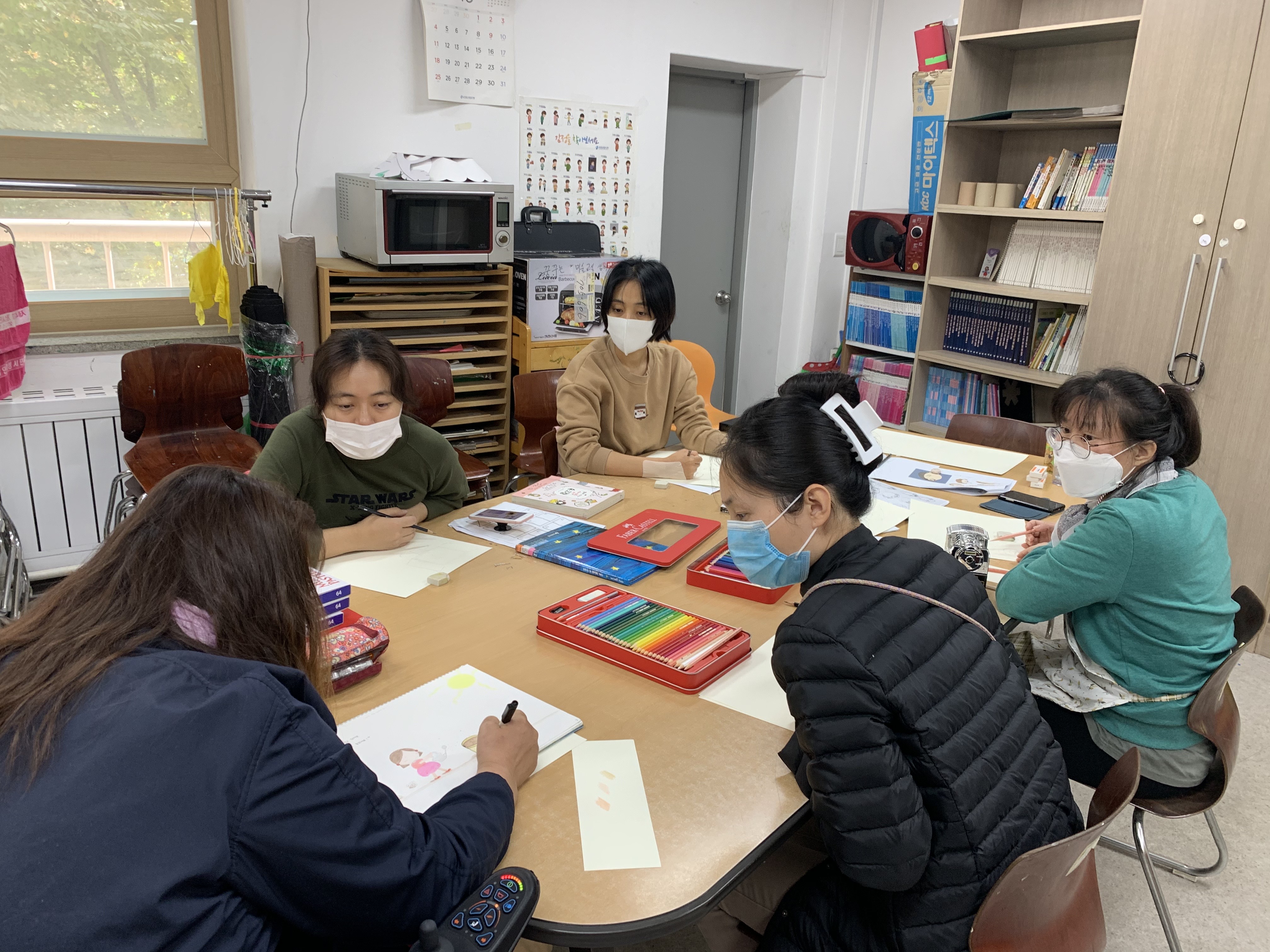 도저히 집에서는 못 그리겠으니 복지관에 나와서 그리면 어떻겠냐는 제안에..