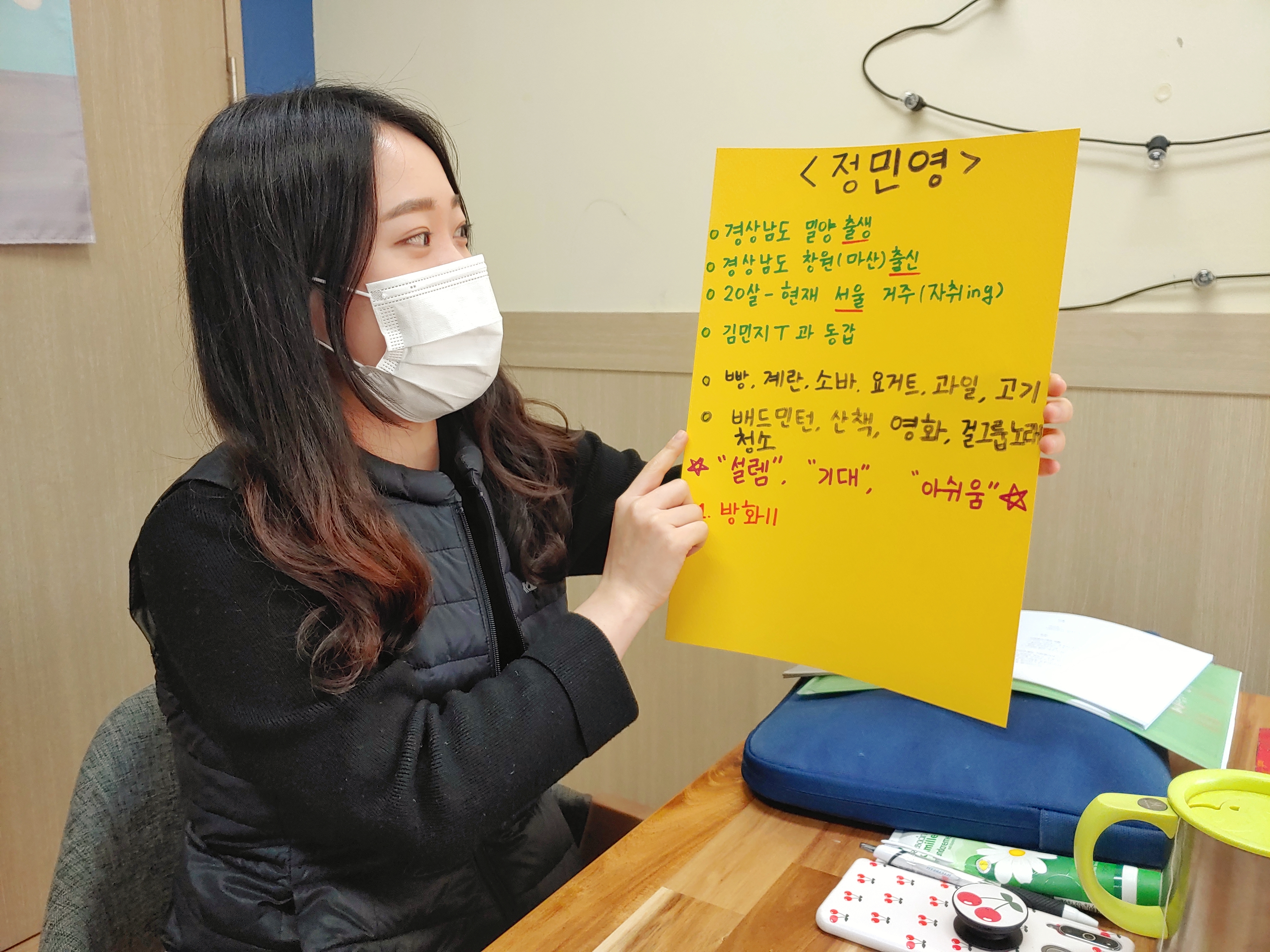 다음 시간까지 '사회사업가인 나'를 주제로 글을 써오기로 했습니다.