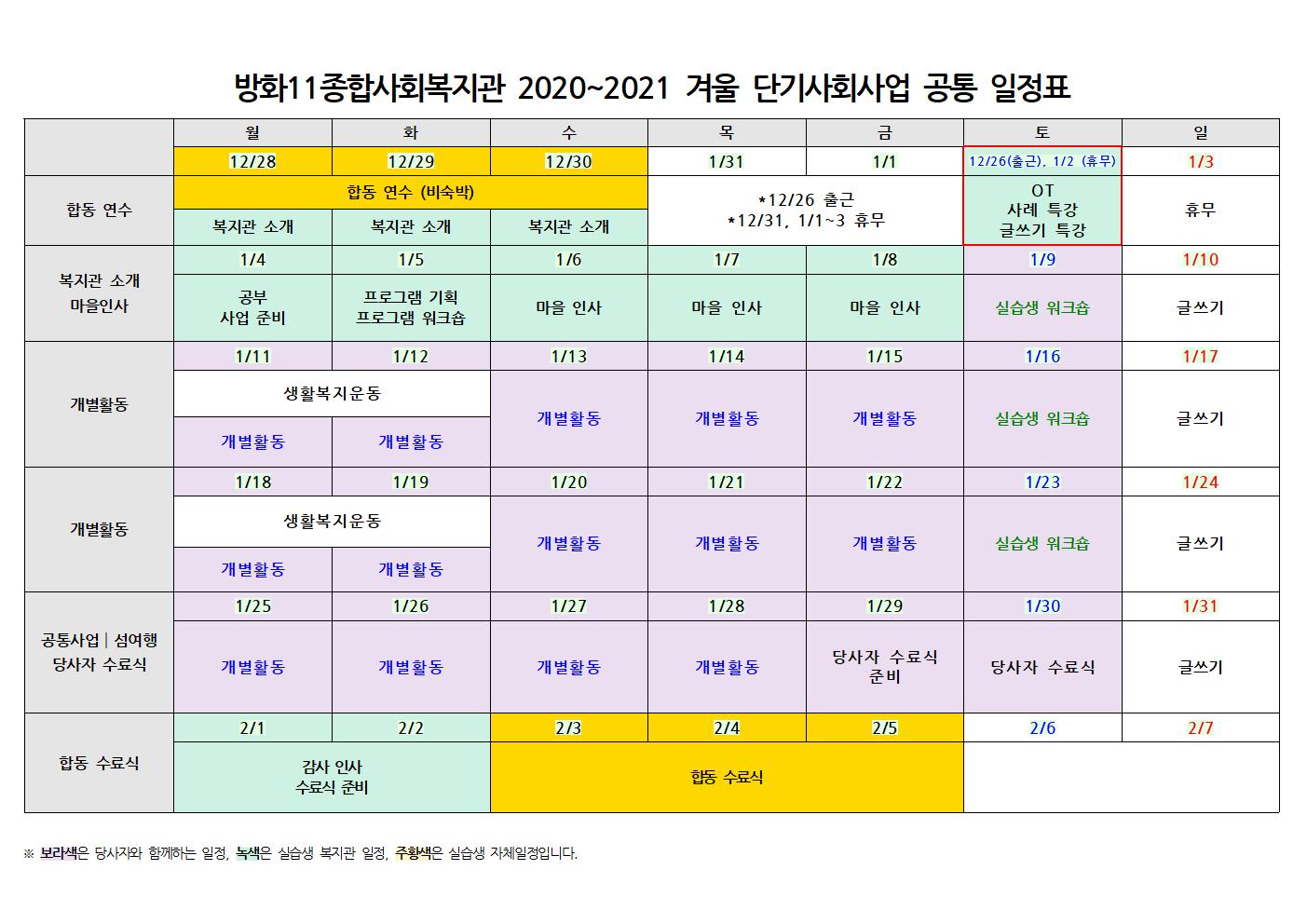 방화11종합사회복지관 2020~2021년 겨울 단기사회사업 (실습) '추가 모집' 안내