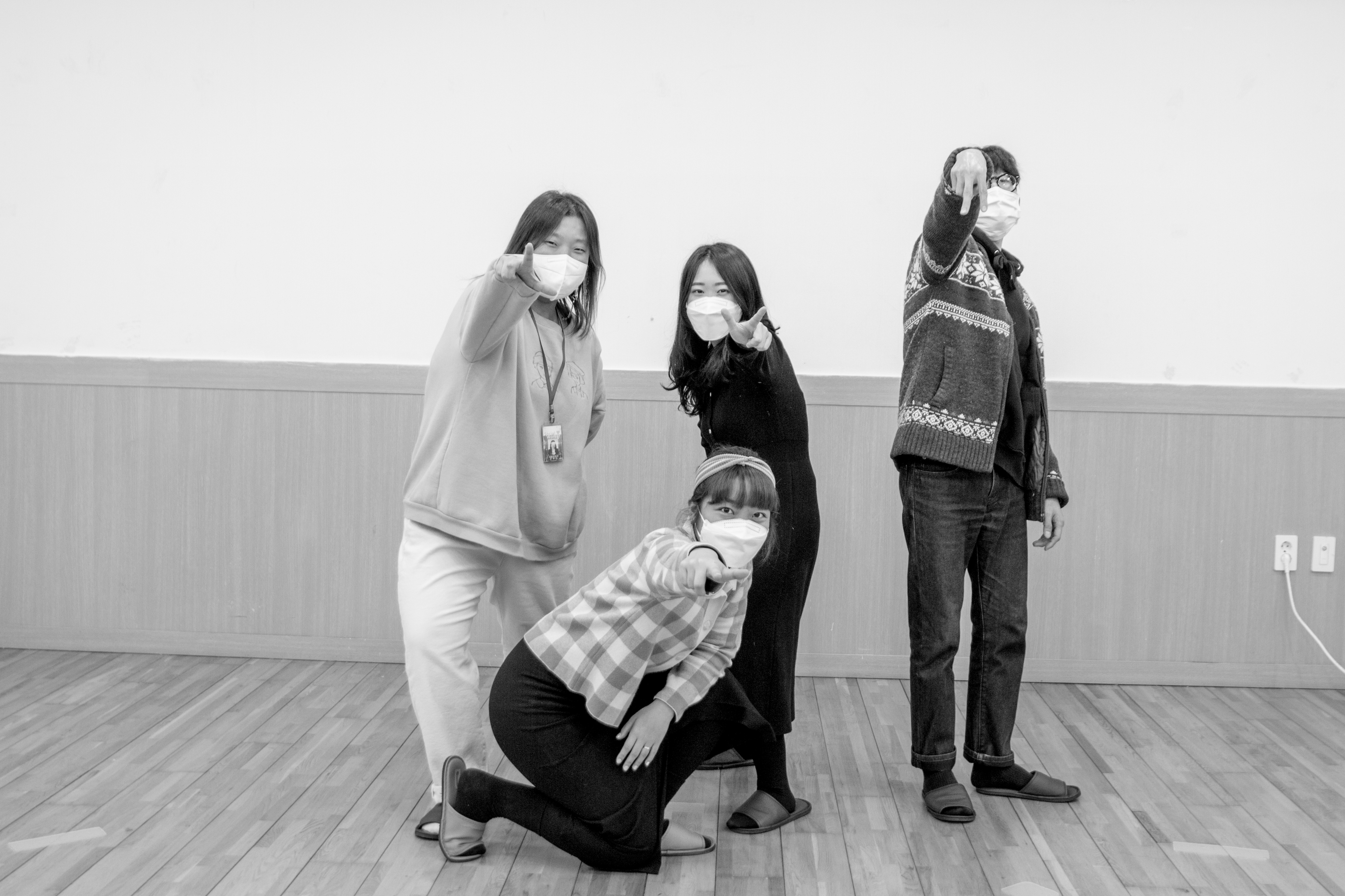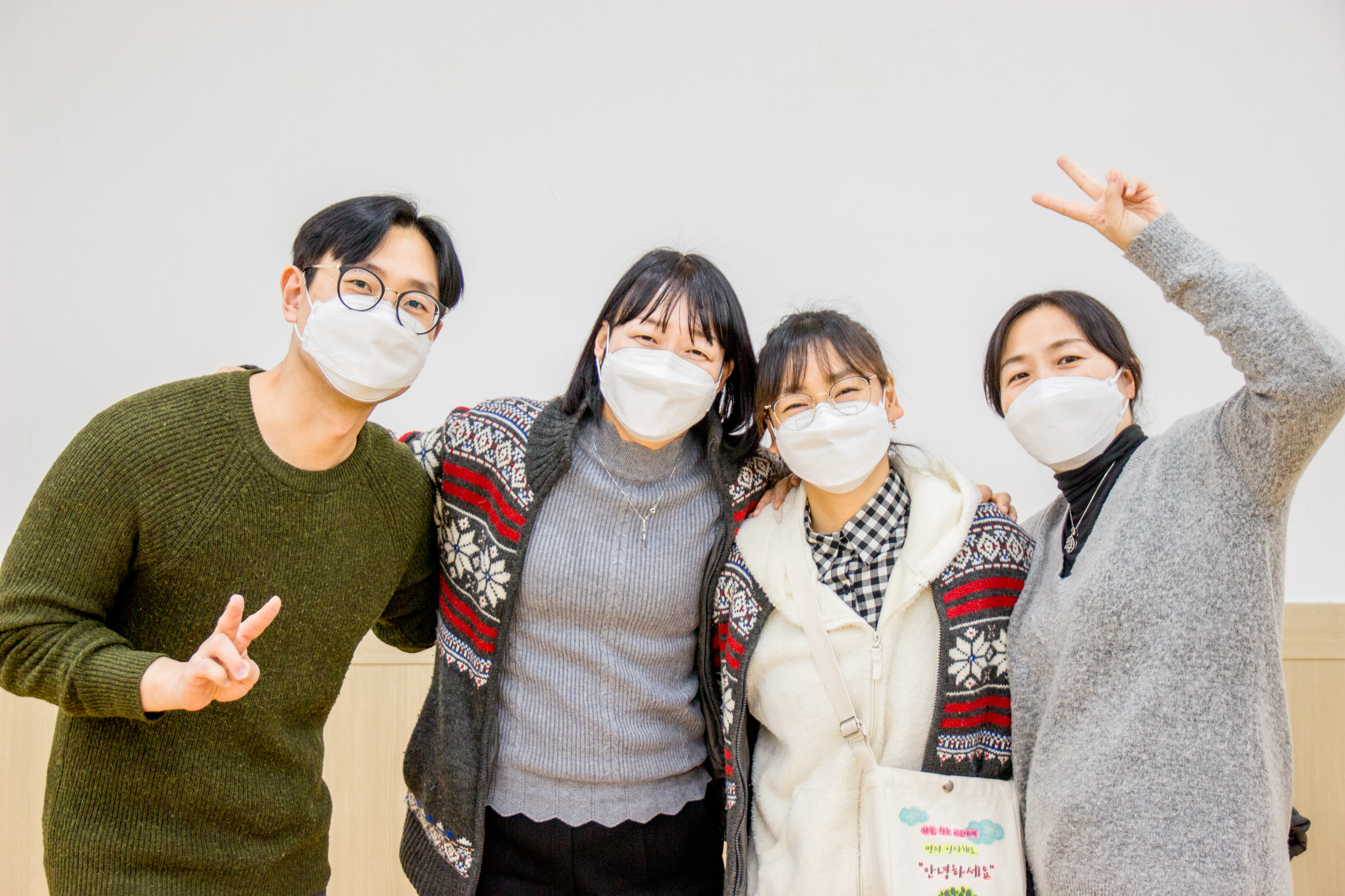 모두 마스크를 쓰고, 거리를 둡니다.