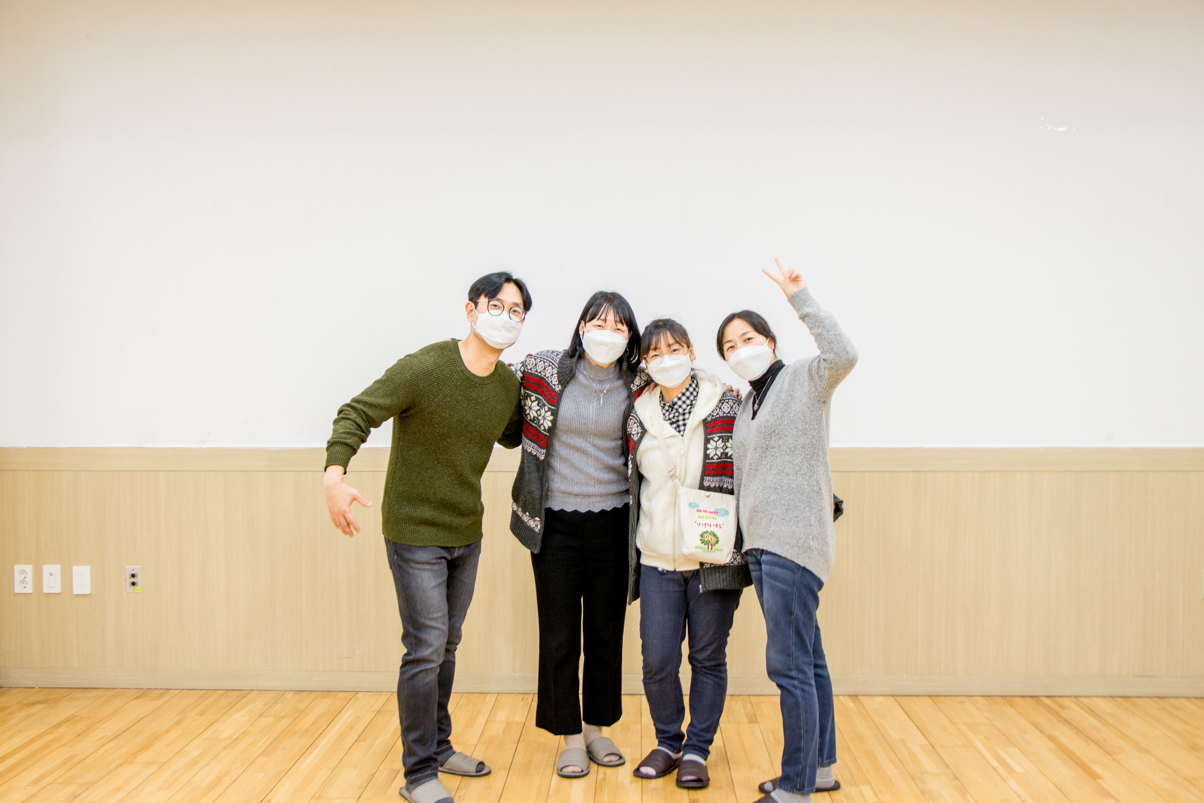 모두 마스크를 쓰고, 거리를 둡니다.