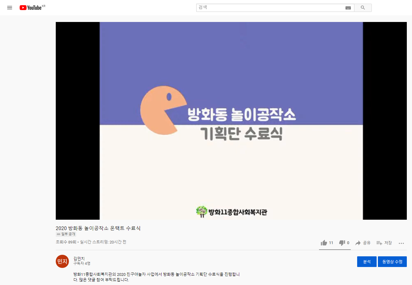 방화동 놀이공작소 기획단 온택트 수료식 영상 링크 : https://youtu.be/2pvI5ZE90yc