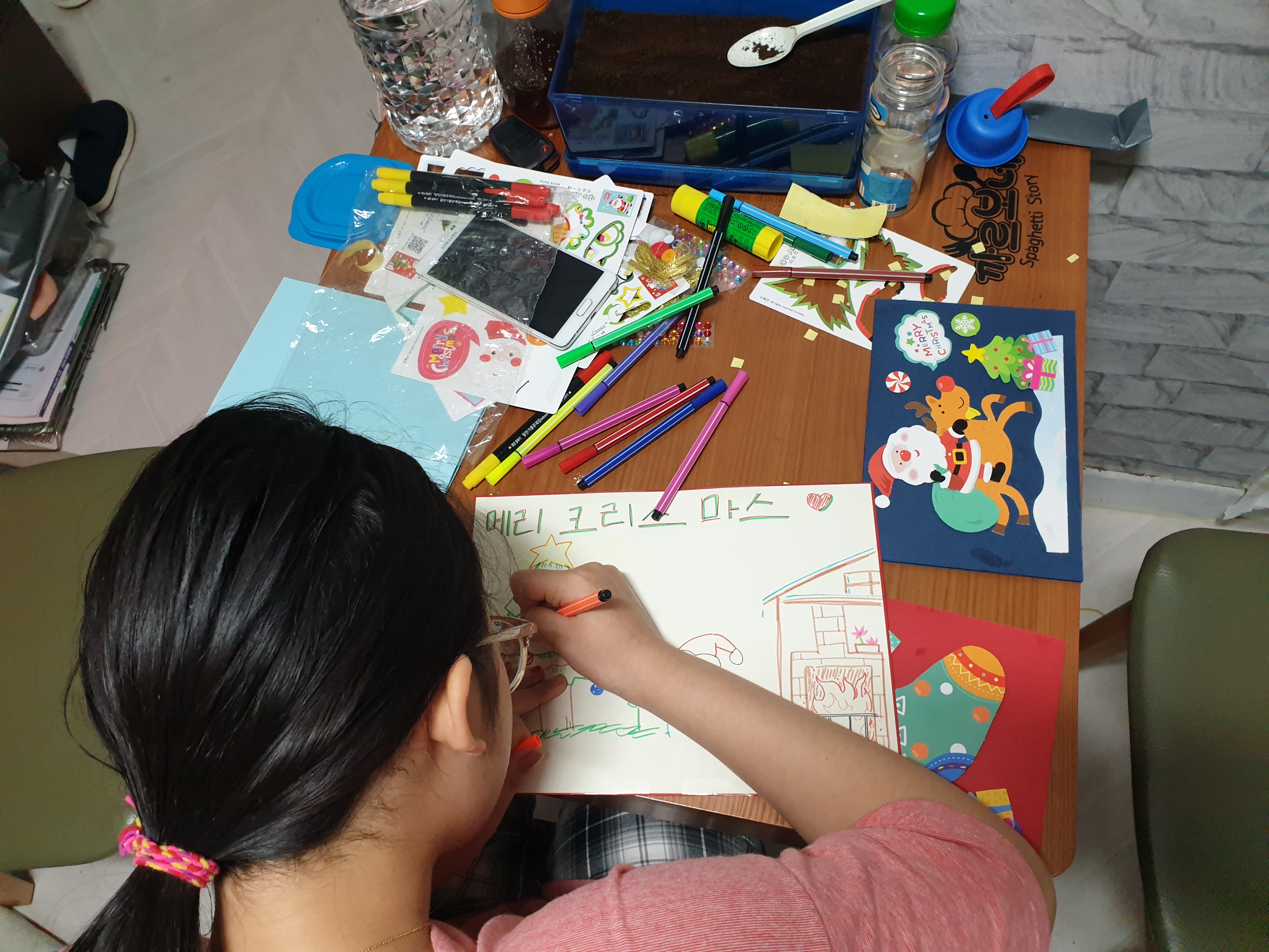 최근 학교도 온라인수업 전환, 학원 휴원 등으로 집에서 종일 학습, 놀이하는 아이에게 이번 크리스마스 인사캠페인 덕분에 만나지 못하는 친구와 선생님에게 크리스마스 인사와 마음을 전하는 기회가 되었습니다. 카드를 만들면서 누구에게 전달할지 어떤 이야기를 전할지 등의 수다 타임으로 즐거운 시간을 보냈습니다. 지역의 아이들이 함께 참여할 수 있는 프로그램 만들어주셔서 감사합니다^^