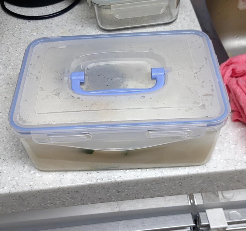 허은숙 님은 댁에 있는 반찬통 중에서 가장 큰 통을 골라 떡국을 한가득 담으셨습니다.