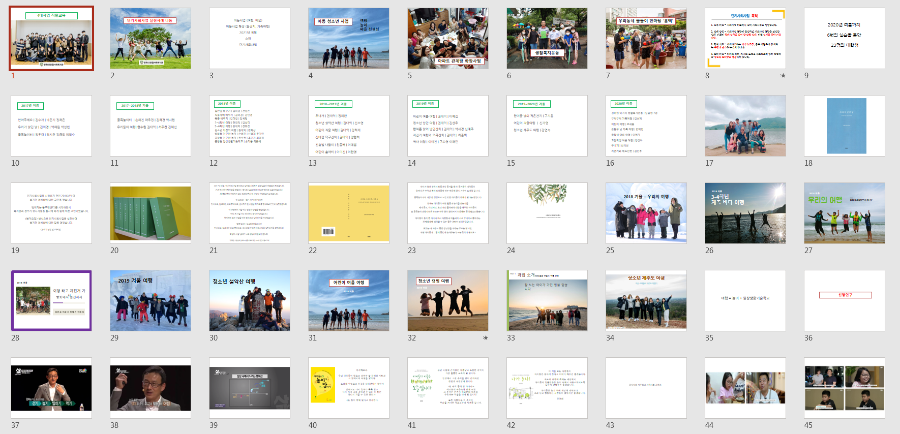 지난 3년 동안 단기사회사업으로 아이들과 어떻게 만났는지 정리해서 발표했습니다.
