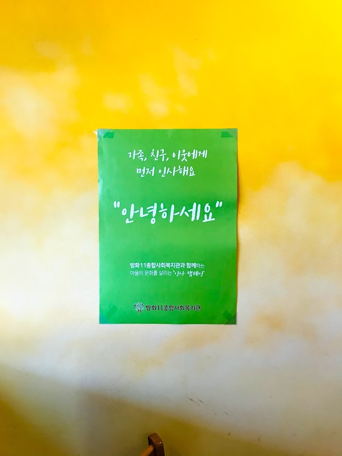 이웃, 가족, 친구와 인사하자는 포스터가