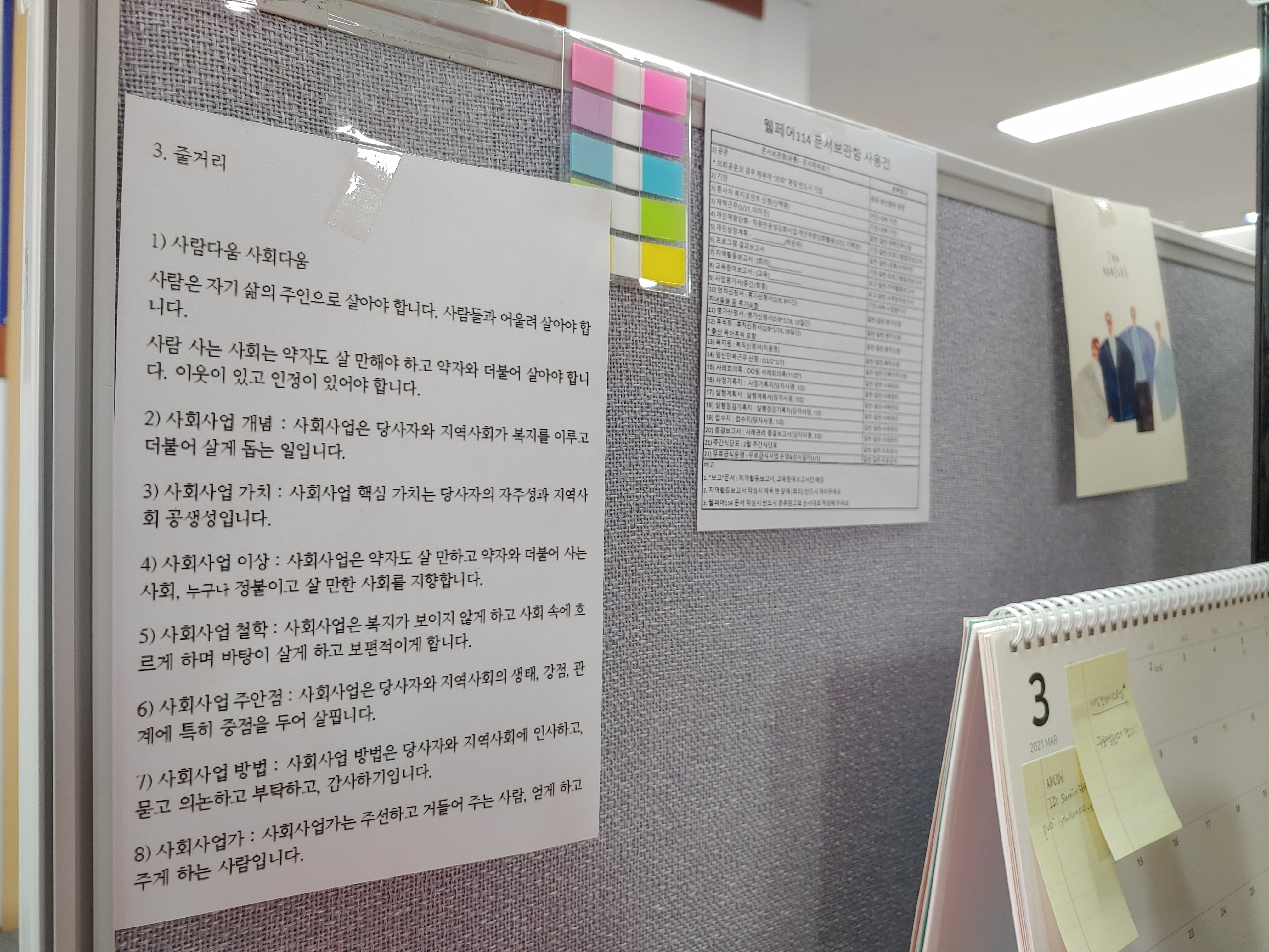 이후에는 복지요결을 잘 알고 있는 여러 경력직 선생님이 입사해서 이 공부는 잠시 쉬었습니다.