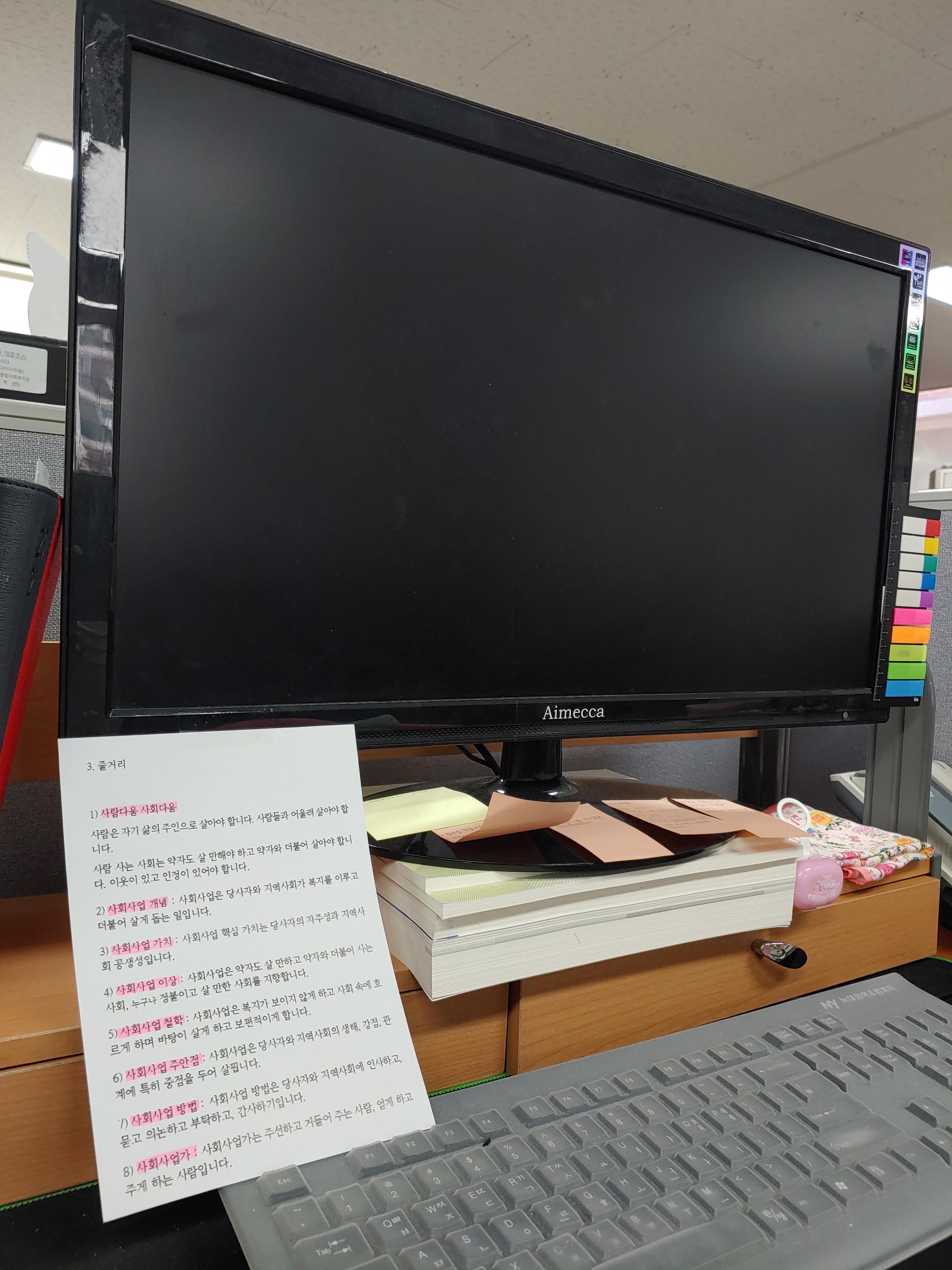 신입직원 강수민 선생님이 복지요결 공부를 하고 있습니다.