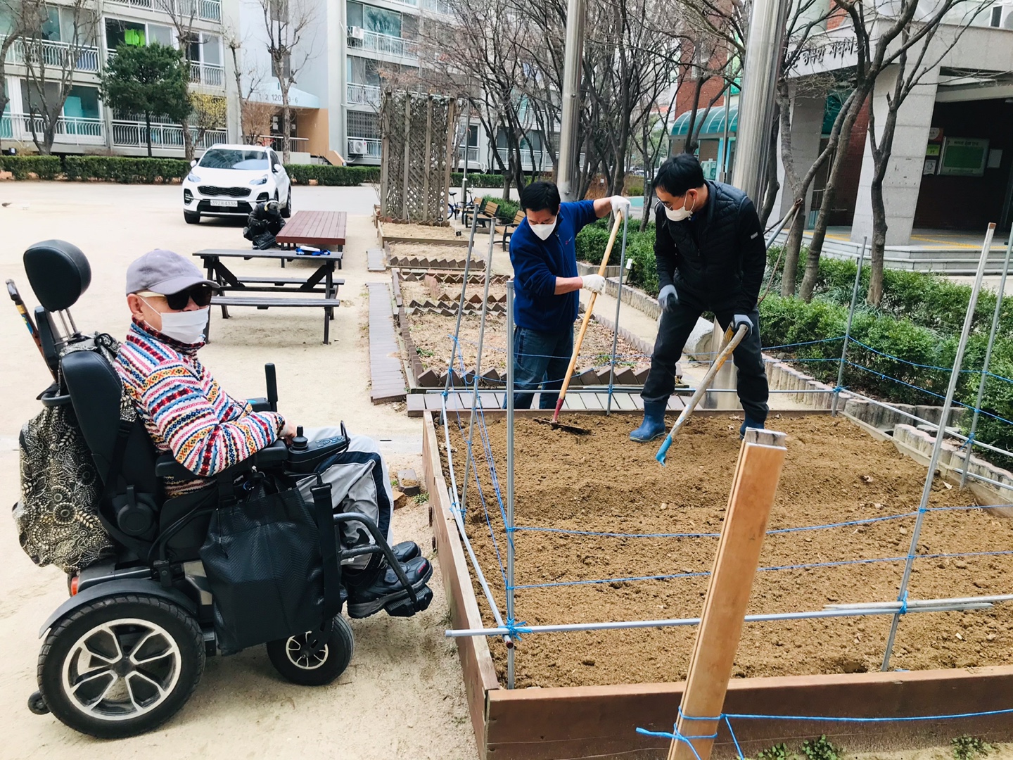 앞마당에 있는 나눔터텃밭 흙갈이는