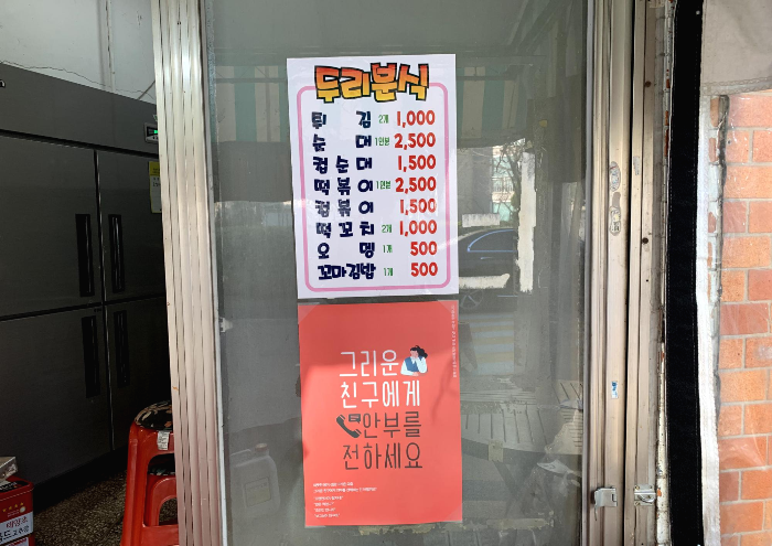 붙이는 요령을 잘 몰라 쩔쩔 매니까 황제 떡볶이 사장님께서 멋지게 붙여 주셨습니다.