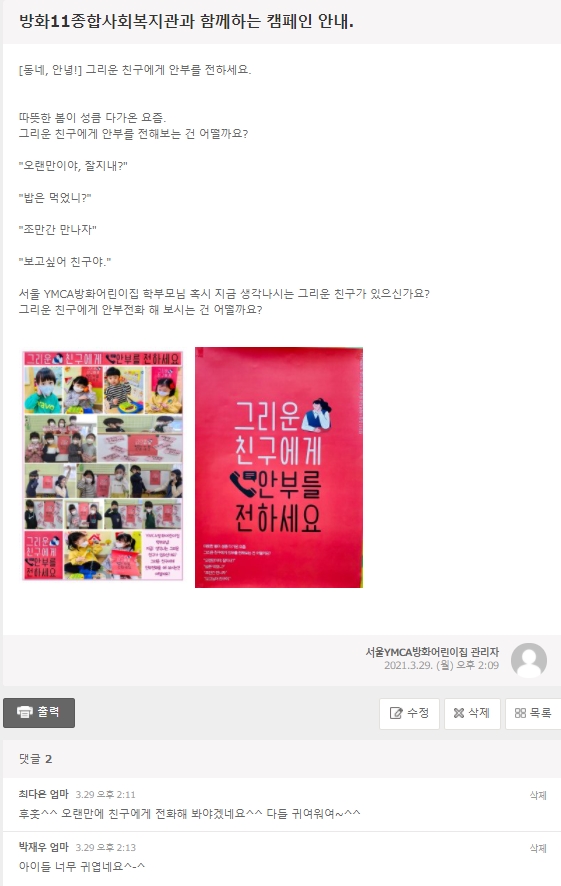 [동네,안녕!] 서울YMCA 방화어린이집과 함께하는 3월 캠페인