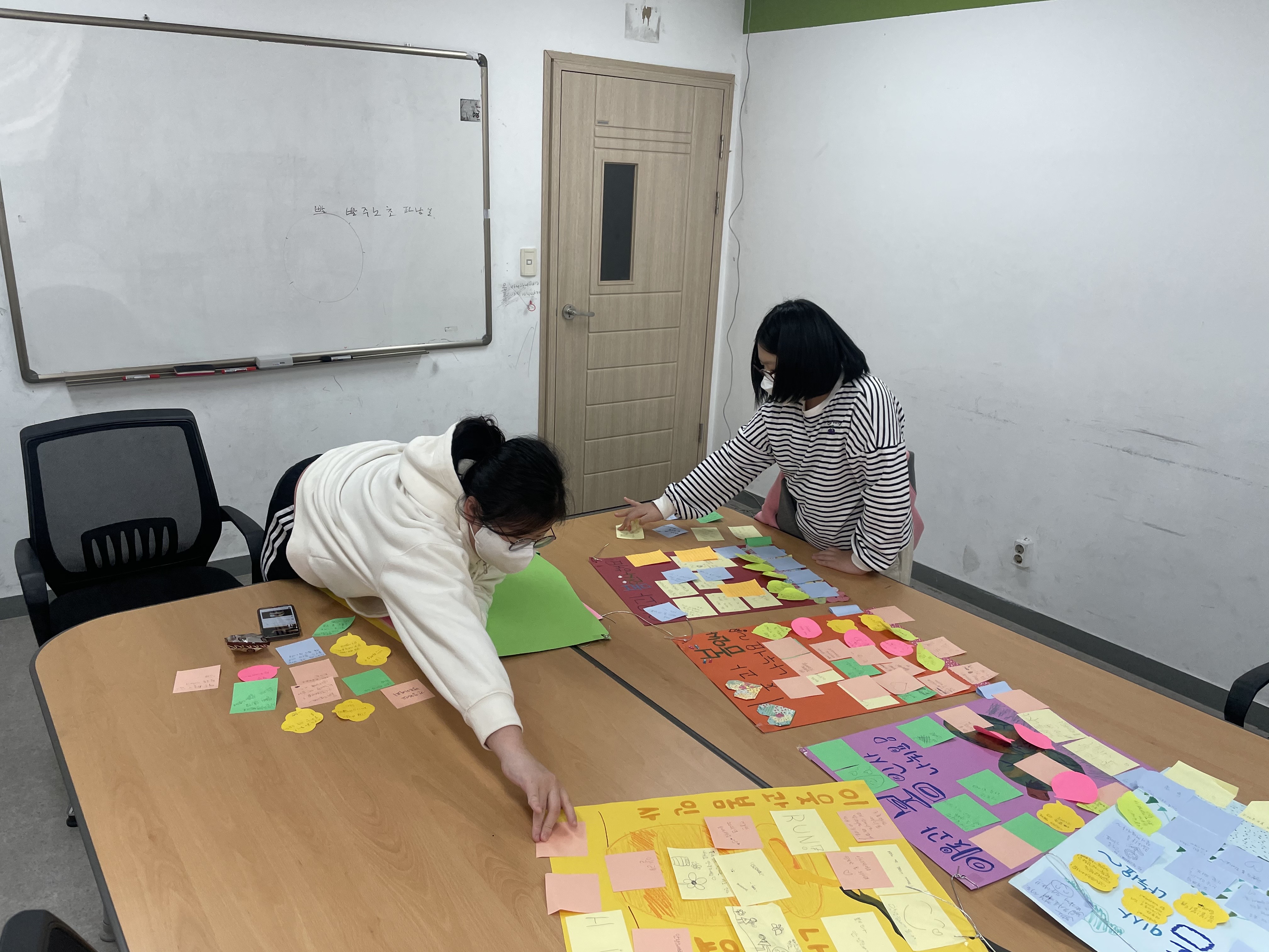 이정이와 정연이는 후기안내문에 사용된 붙임쪽지 취합과 안내멘트를 맡아주었습니다.