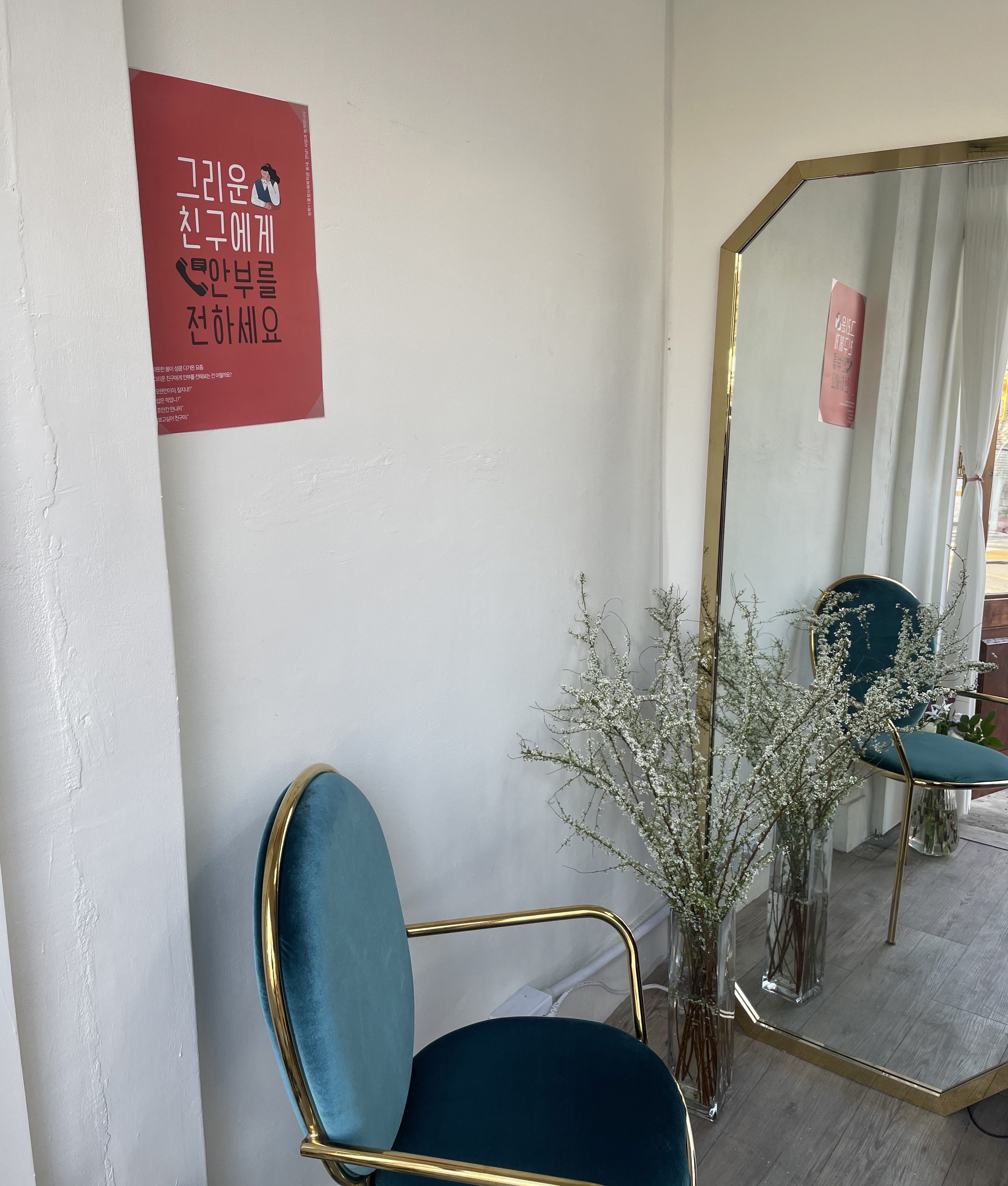 수제쿠키 전문점인 과자구움은 앤티크한 거울과 의자가 있었습니다.