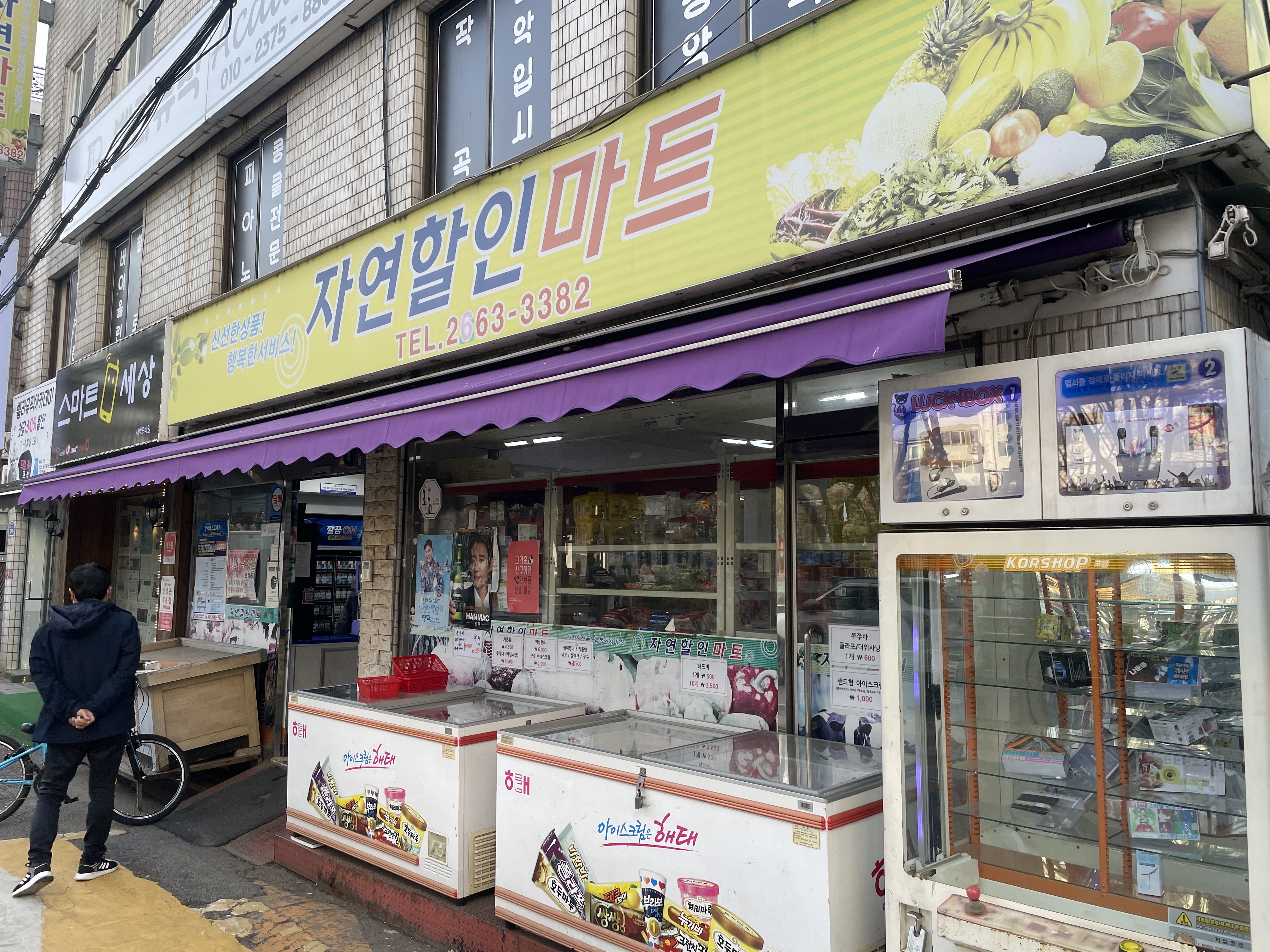 자연할인마트 사장님께서 가게 앞에 있는 이병헌 배우 포스터 옆에 저희 포스터를 직접 부착해주셨습니다.