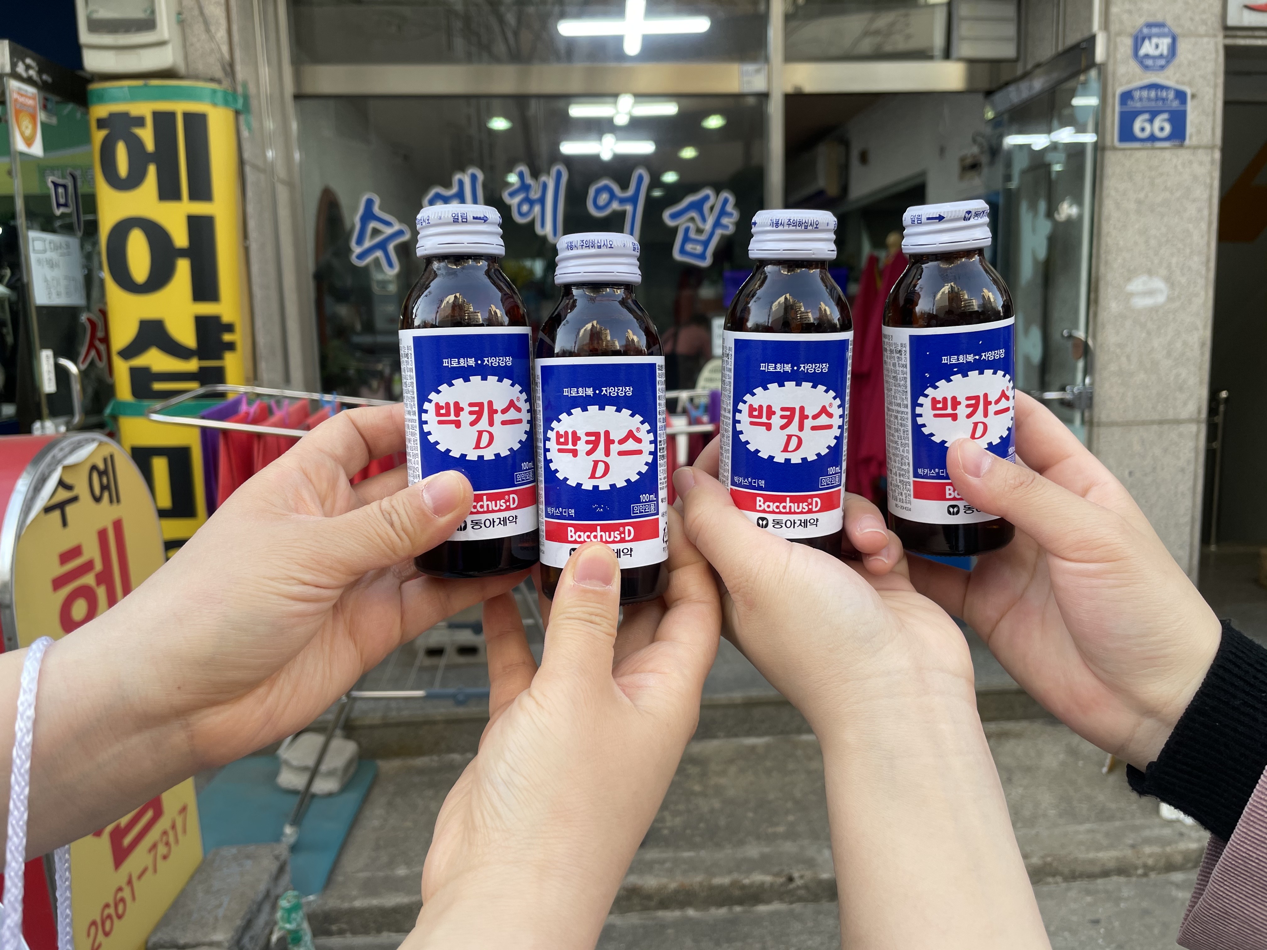 수예헤어샵 사장님께서 고생한다며 저희에게 피로회복제를 주셨습니다.