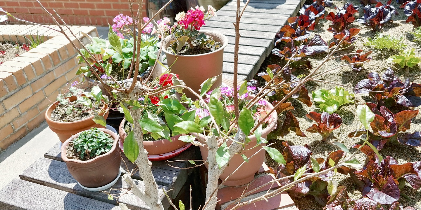 각종 채소류와 화초 꽃들로 어우러져