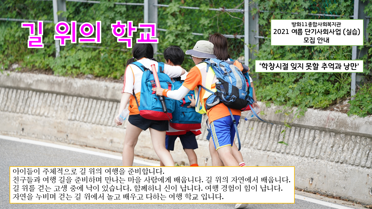 초등학생 고학년 아이들이 주체적으로 준비하고 떠나는 걷기 여행입니다. |