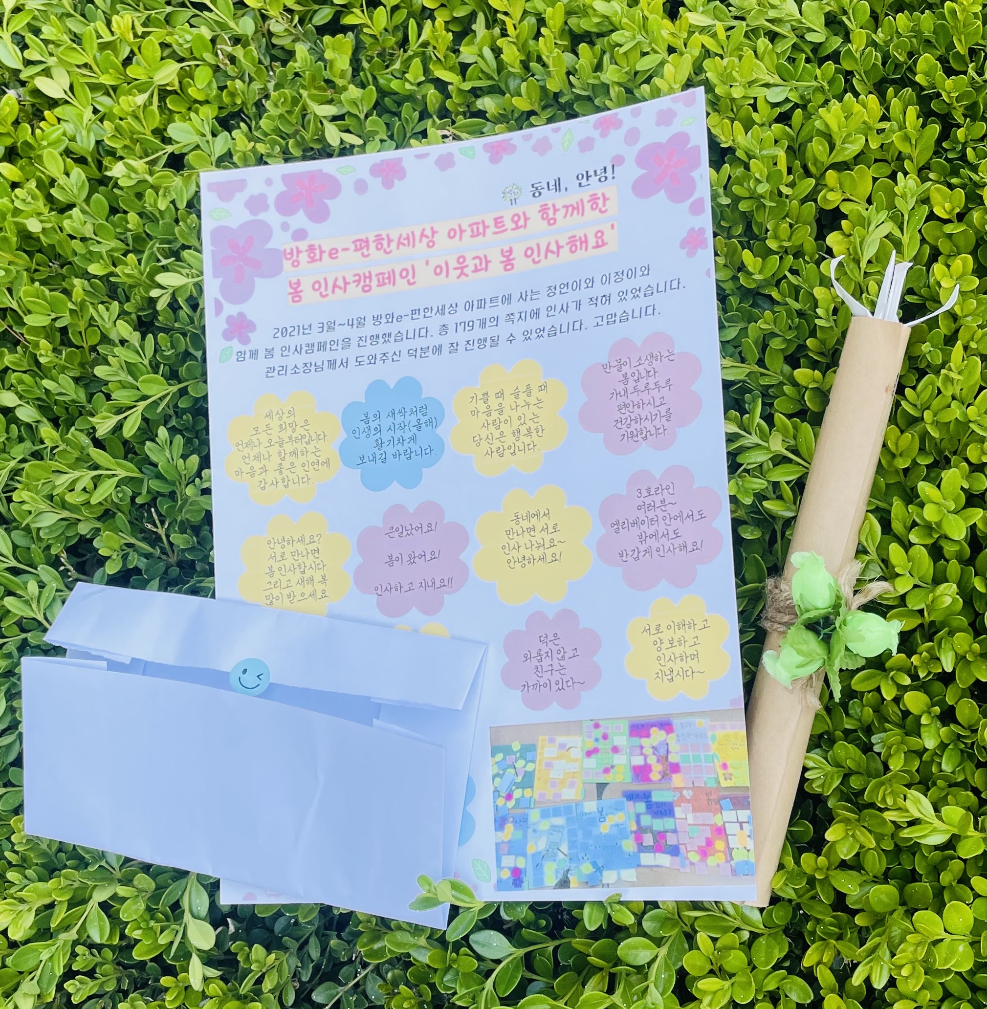 주민들이 붙임쪽지로 남겨준 봄 인사를 한 장으로 볼 수 있게 권민지 팀장님이 모음지를 만들어주셨습니다.