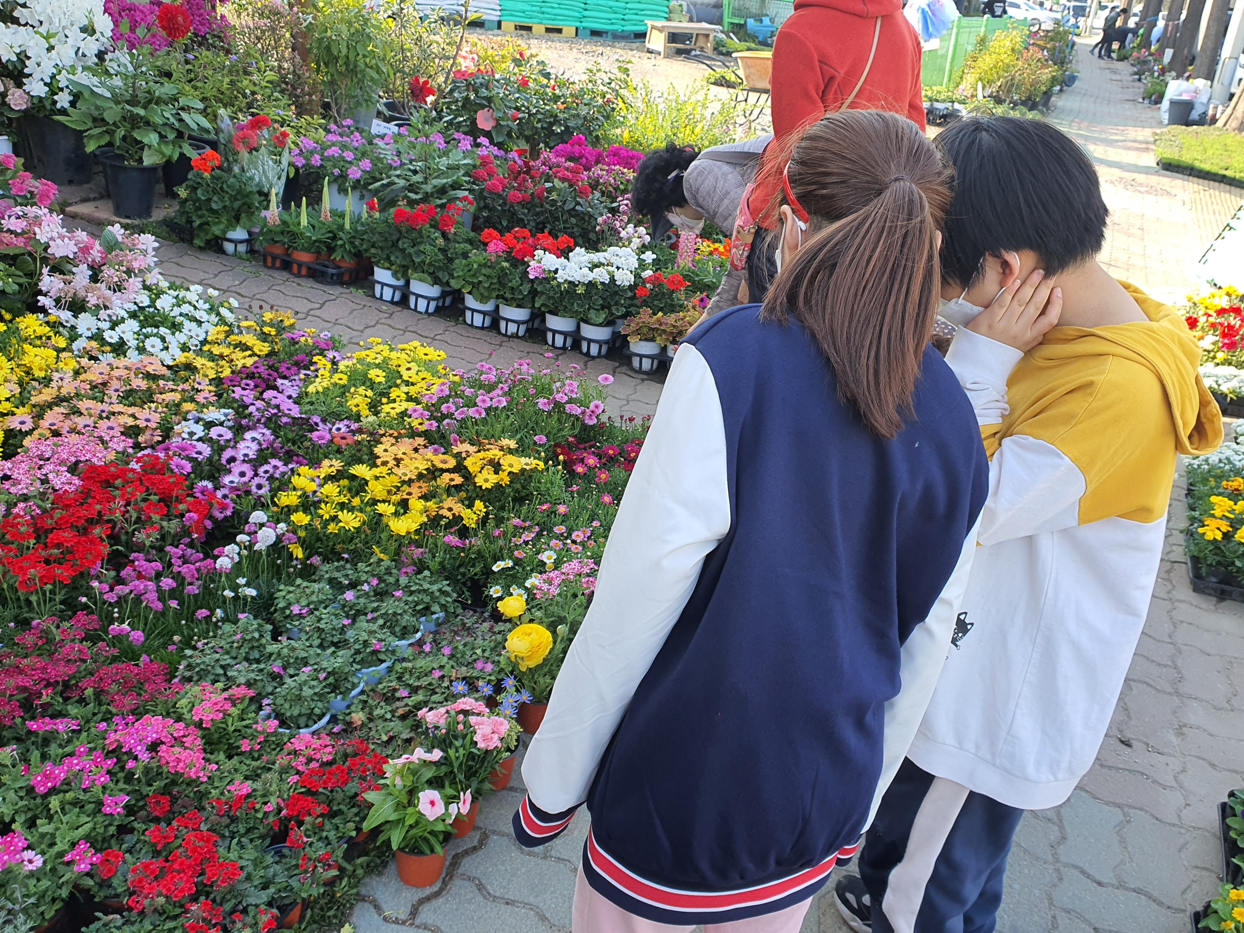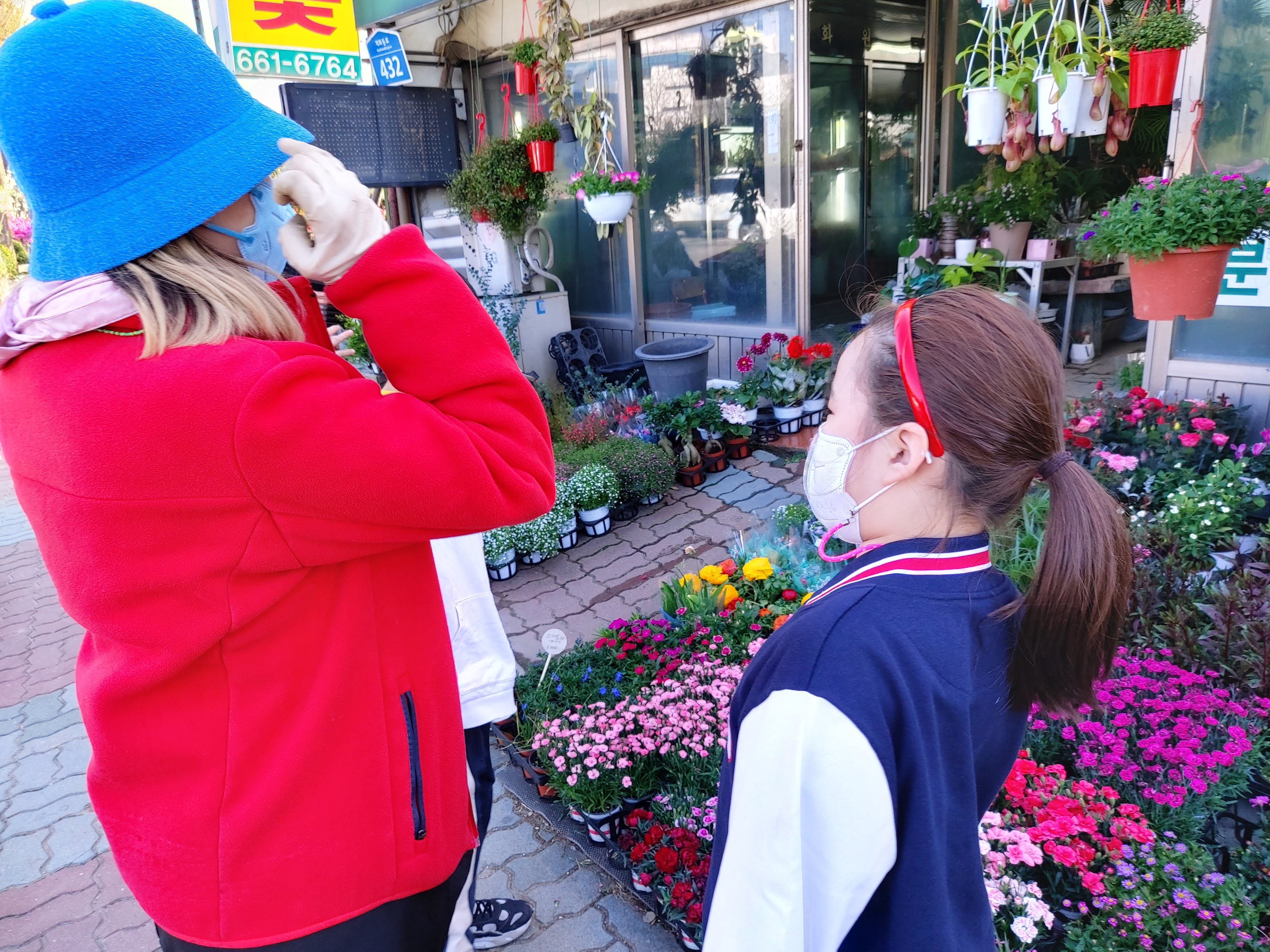 예쁜 꽃을 산 뒤 복지관으로 돌아오는 길에