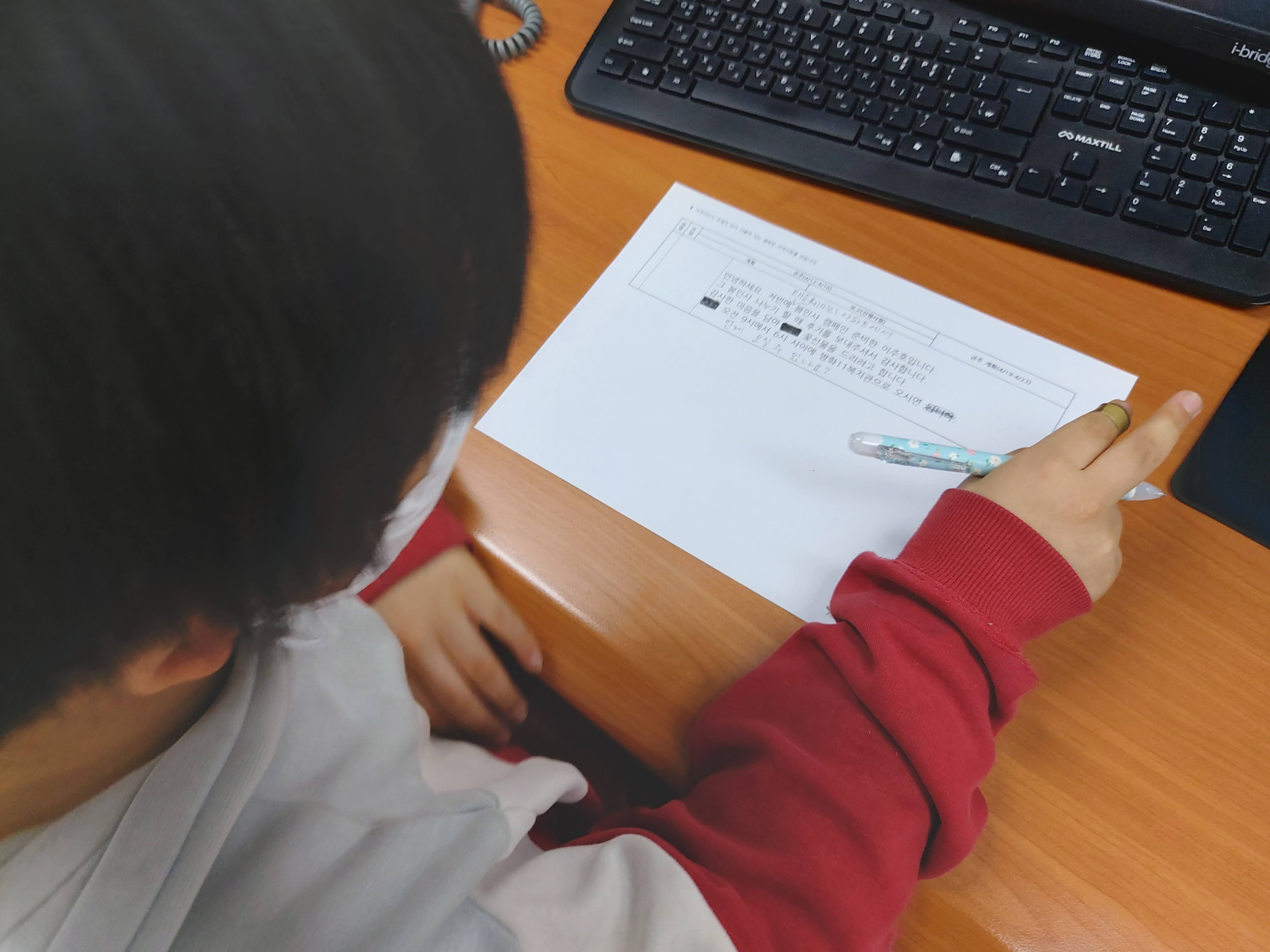 나은이는 다음날 방과후 수업에 가기전 시간을 쪼개어 다시 복지관에 들르기도 했습니다.
