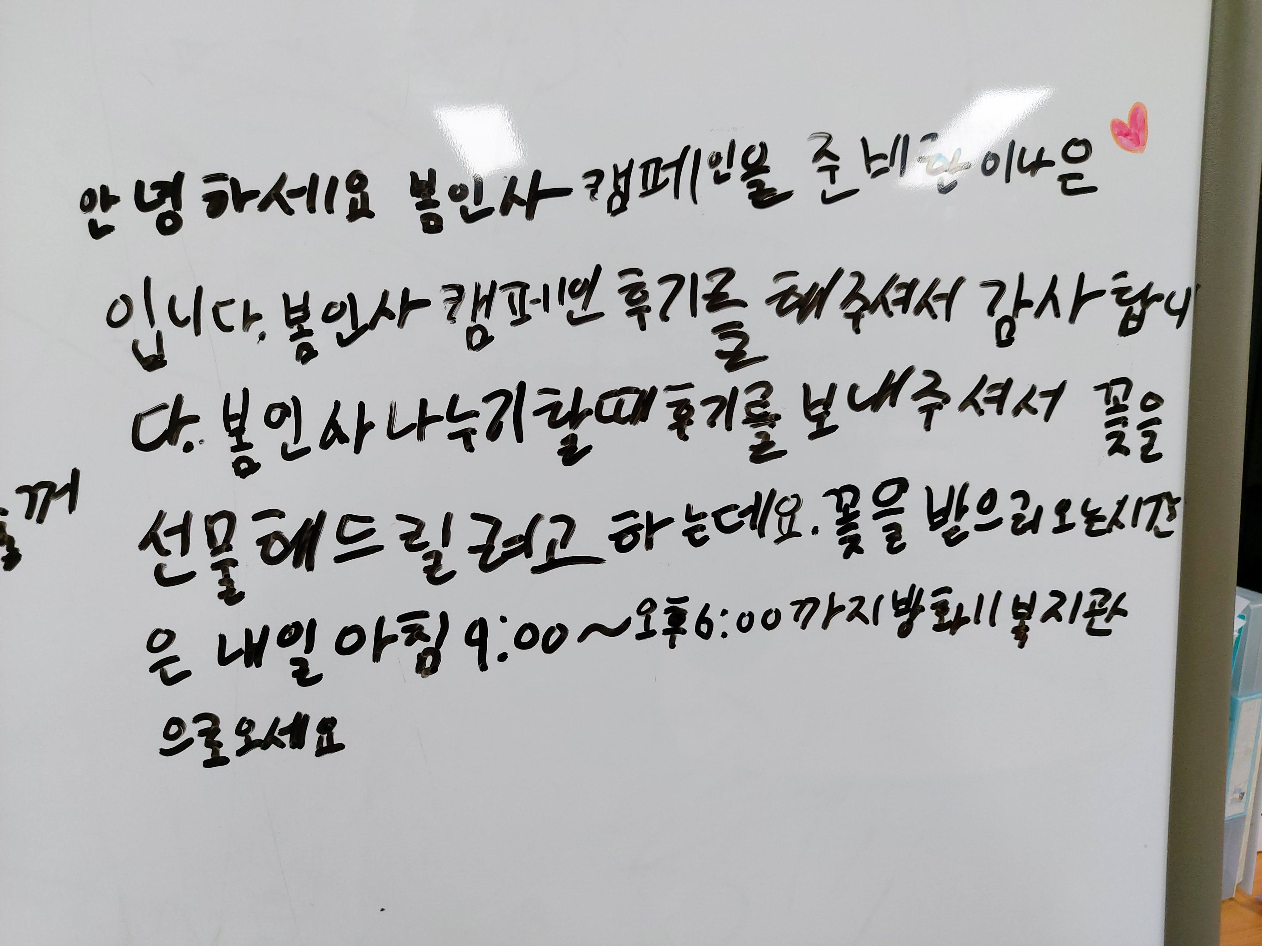 봄인사 캠페인을 무사히 마치고 후기를 받았습니다.