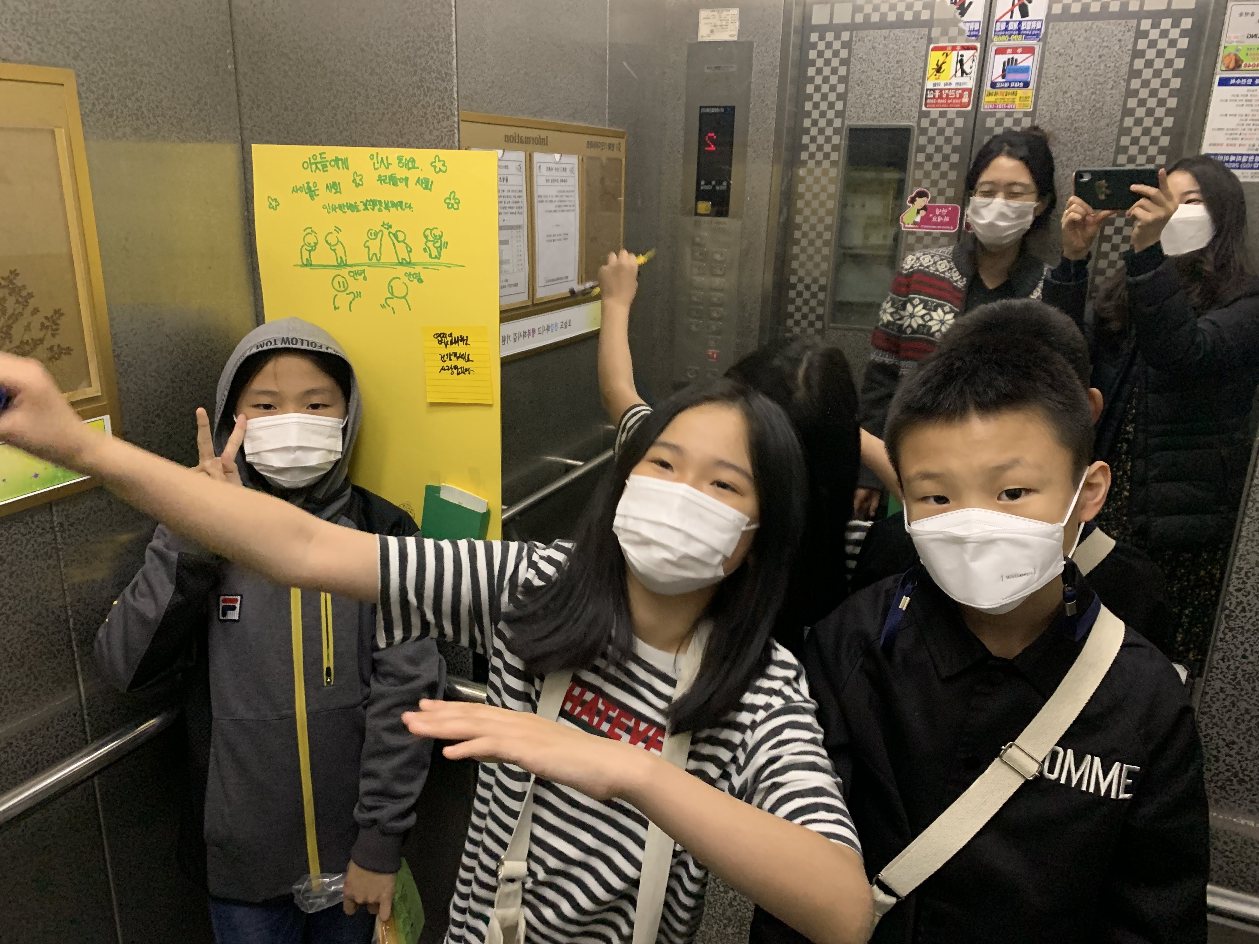 아이들과 5시 모였습니다. 붙임쪽지판을 마저 만들고 꾸민 후에 11단지 관리사무소에 찾아갔습니다.