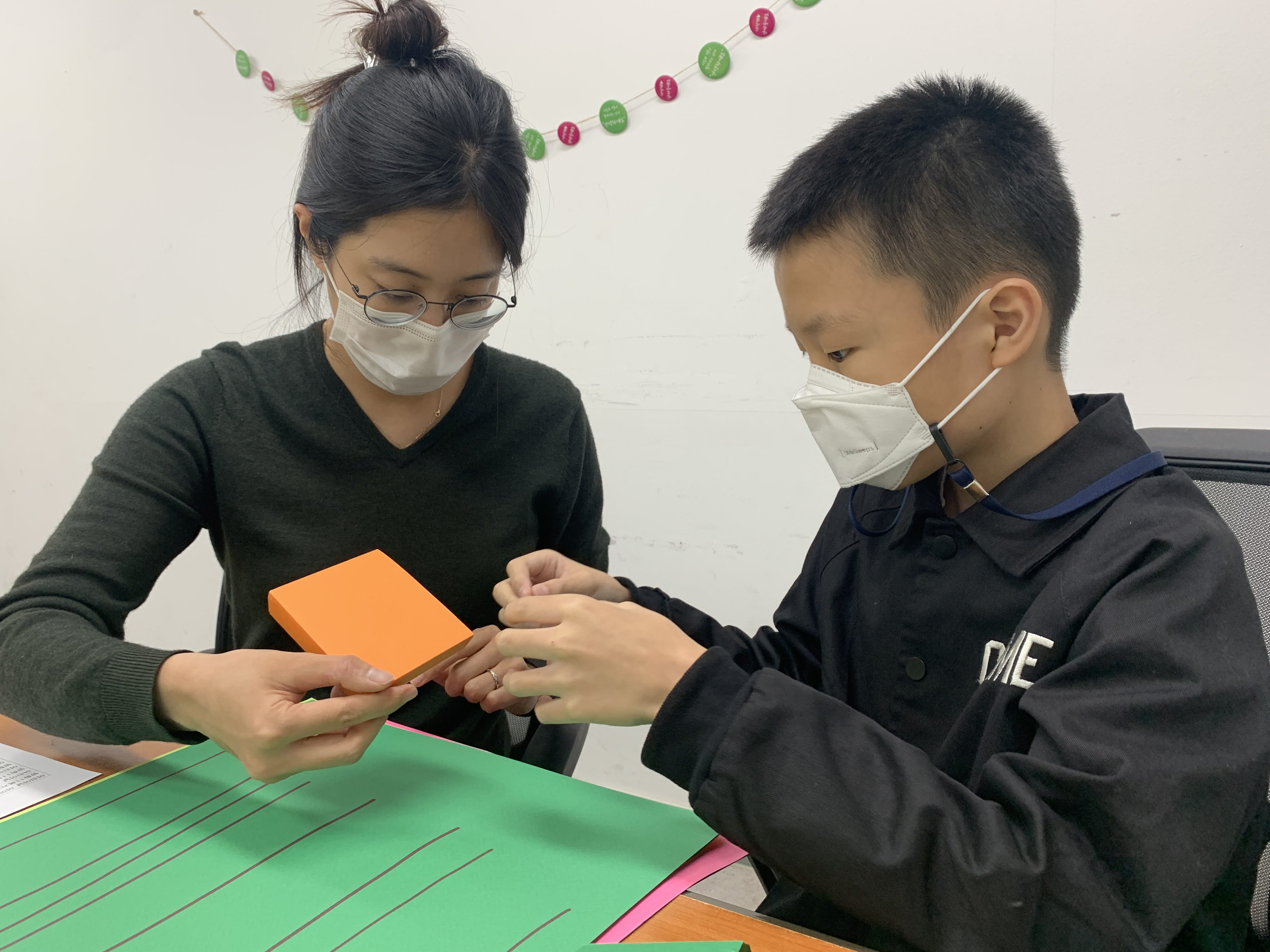 종이가 두꺼워 손이 아파오지만 괜찮다며 끝까지 해냅니다