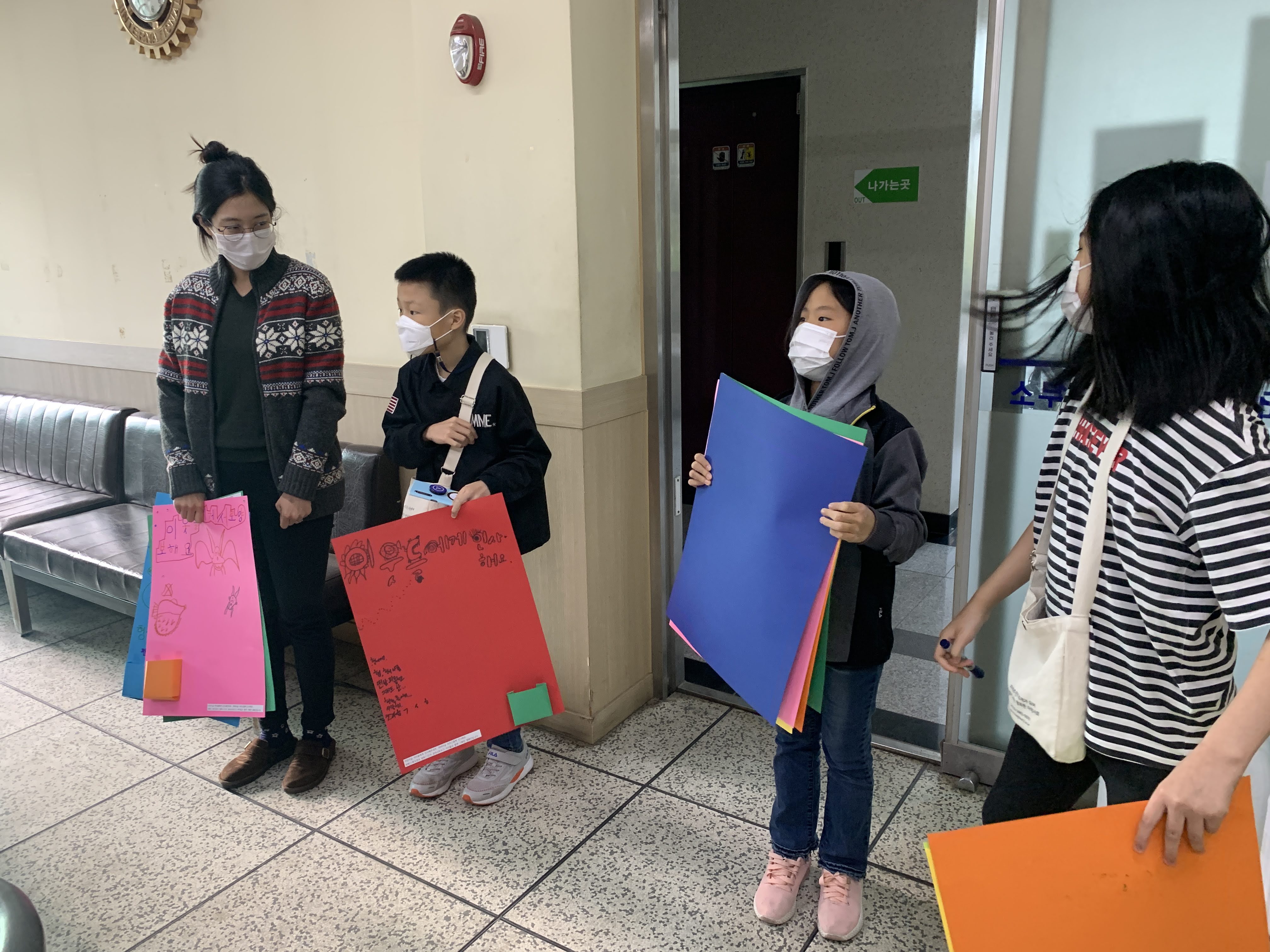 나서기 쑥스러운지 아이들이 멀뚱히 서 있었습니다. 김선희 계장님이 웃으시며 ‘쑥스럽구나’ 하셨습니다.
