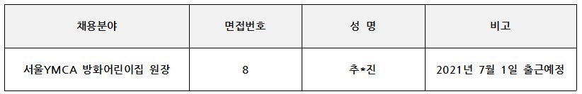 서울YMCA 방화어린이집 원장 최종합격자 공고