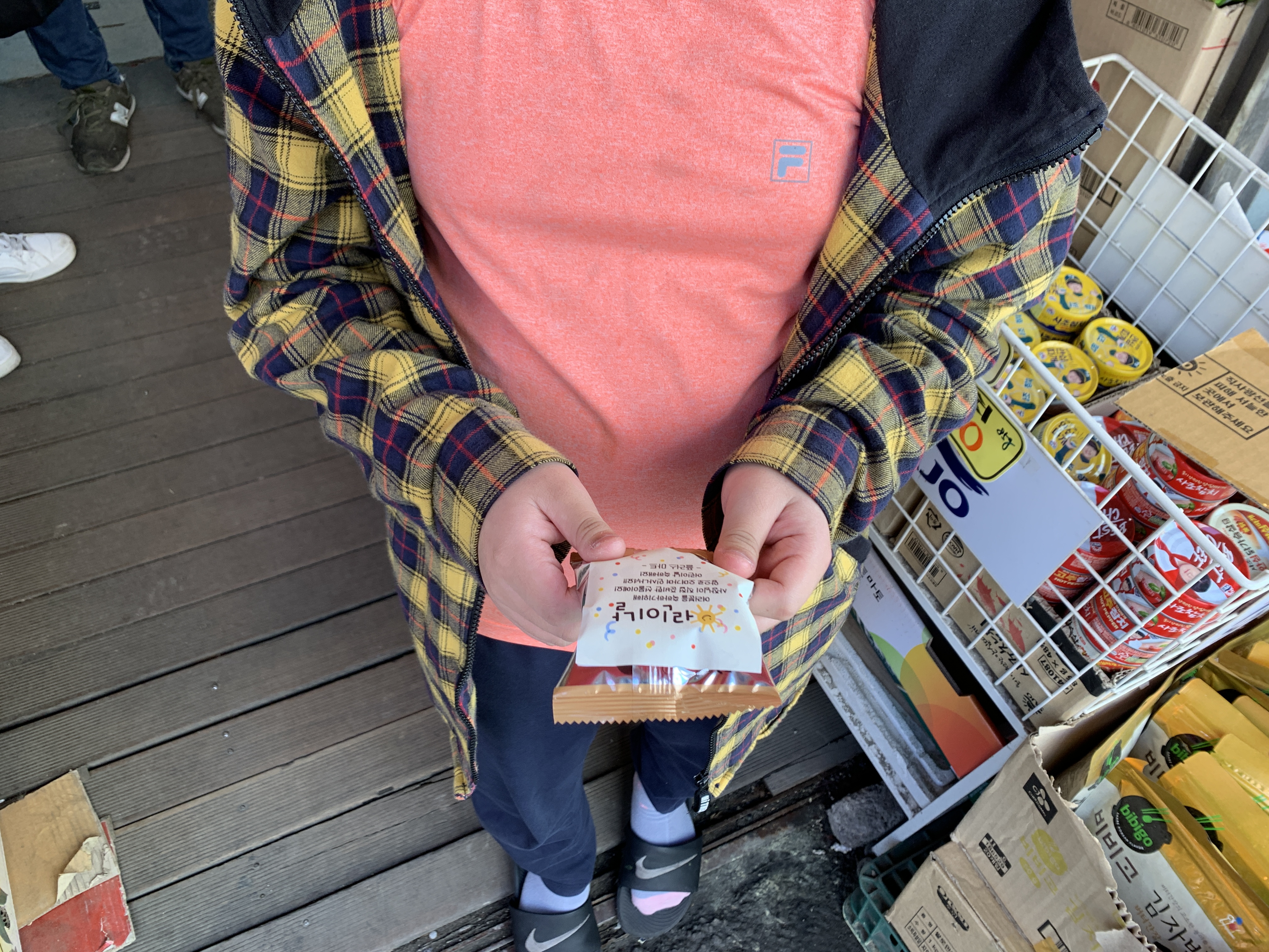 “나 여기 맛있으면 또 사먹으러 와야지! 감사합니다. 안녕히 계세요.”