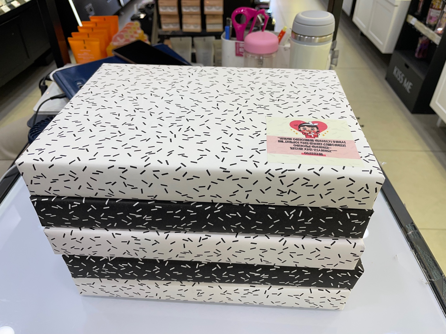 우리는 사장님 마음과 정성 담긴 선물에 예쁘게 붙일 스티커 준비와