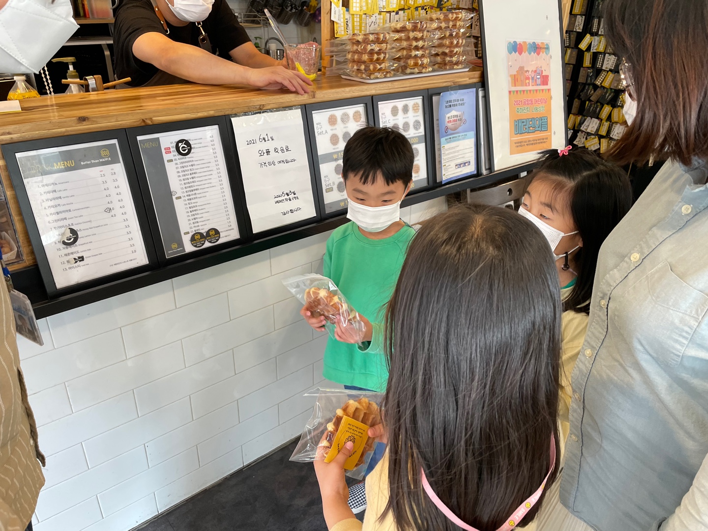 장미공원에 있던 많은 아이들이 소문을 듣고 베러 댄 와플로 갔습니다.