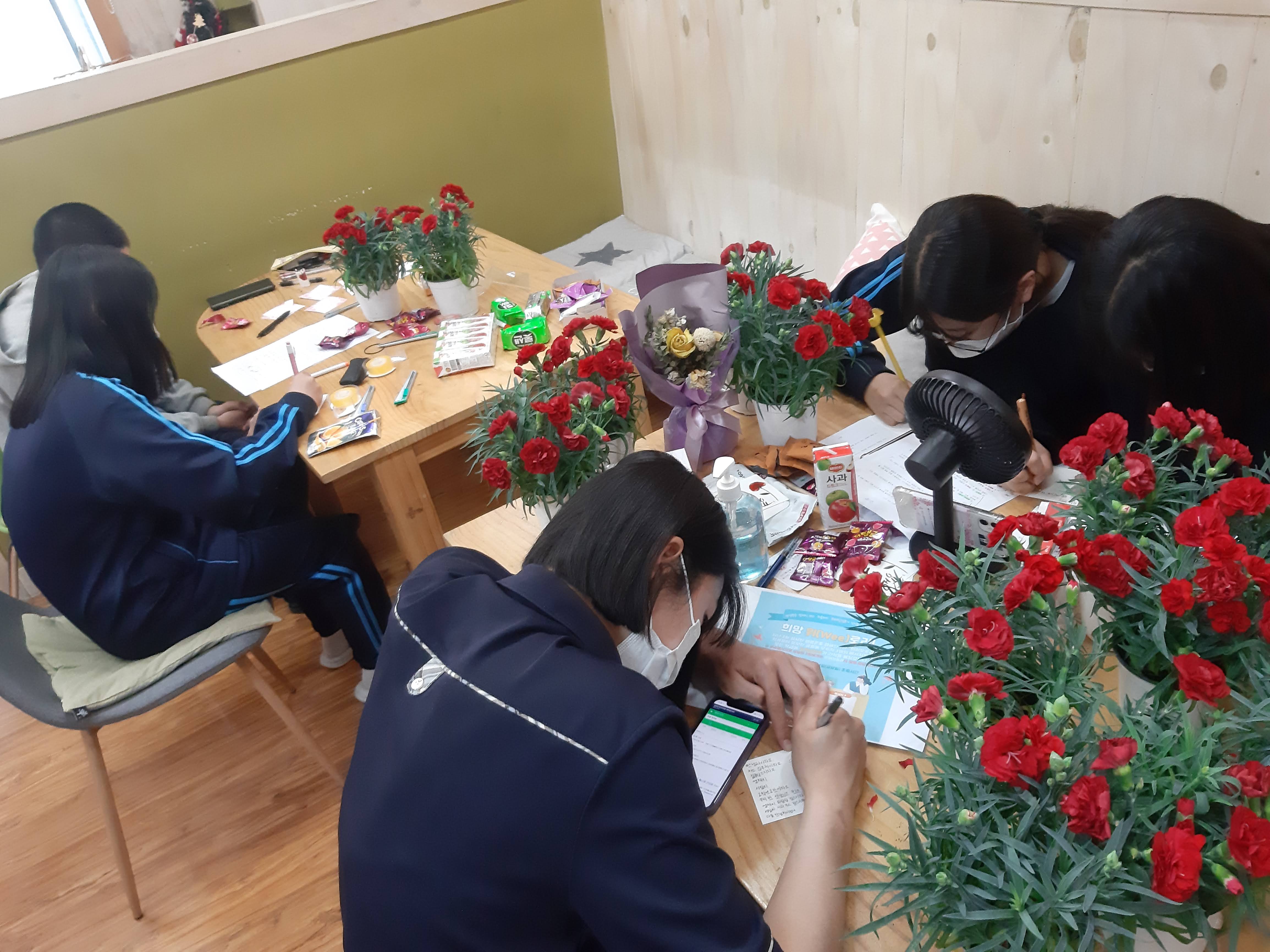 카네이션 화분으로 학생회 또는 e클래스 학생들과 스승의 날 행사 활동을 진행하고 싶다고 하셨습니다.