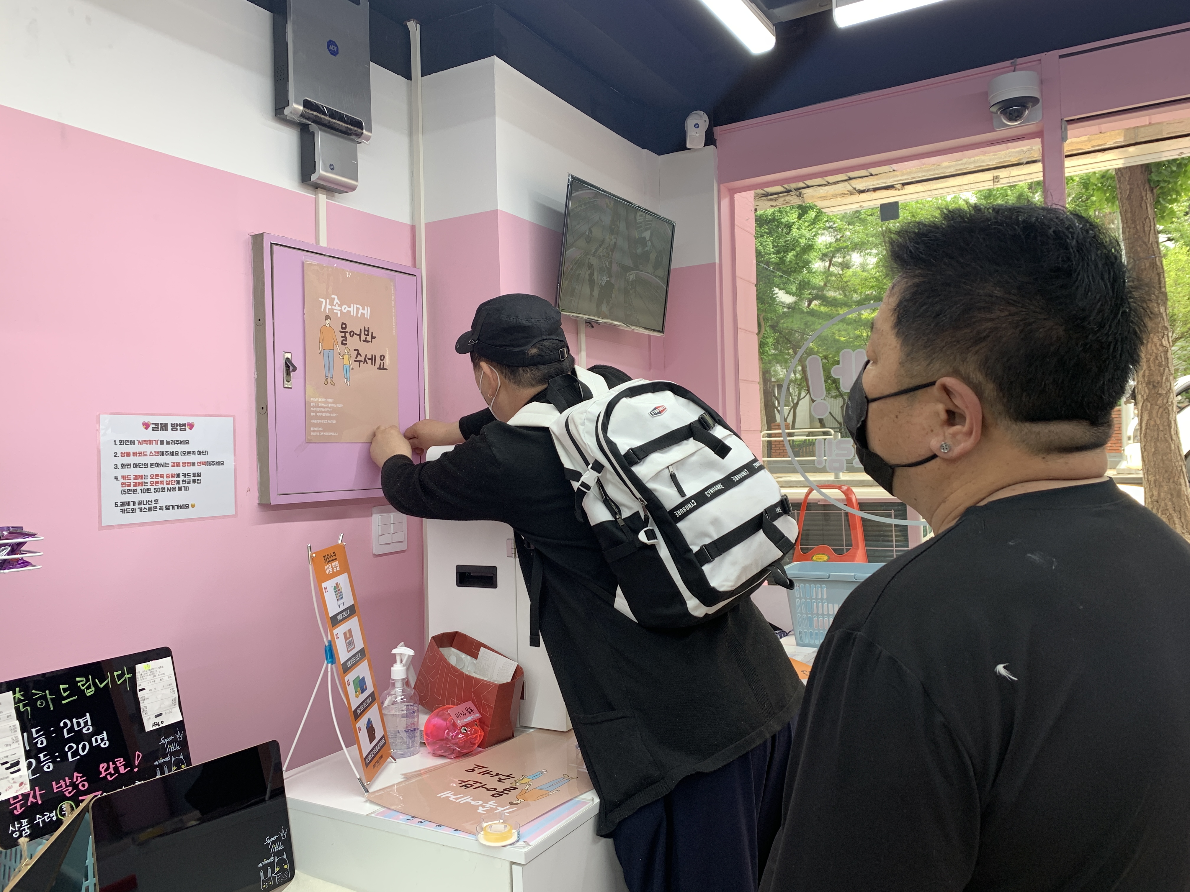 보해마트 사장님과 과장님께 이제부터 포스터 붙이러 오실 두 분을 소개드리고