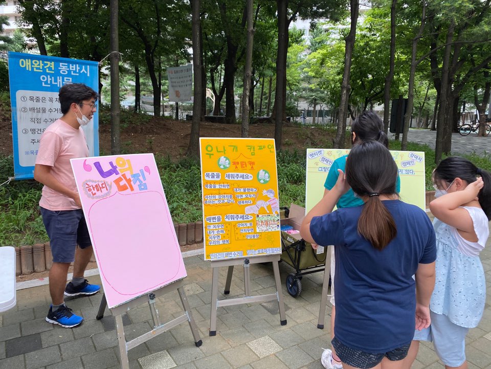지난 활동이야기 “키우고 있는 강아지 종이 뭐예요? 저는 포메 키우고 있는데.” “지금은 올해 8살이 된 시츄를 키우고 있어요!” “와아. 정말요? 앞에 앉아 계신 김경옥 님도 10살 된 시츄를 키우고 계세요!” “애들이 먹을 떡인데 당연히 나눠줘야지! 집에 가래떡이랑 절편 좀 있어. 떡 가지러 우리 집으로 가자.” “내 12년 인생 중에 이렇게 희귀한 경험은 처음이에요! 너무 재미있고 신기해요.” 단기사회사업으로 '우나개' 사업을 2번 했습니다. 강아지 산책 애티켓 배우기 강아지 애착인형 만들기 강아지 샴푸 만들기 강아지 목걸이 만들기 강아지 영화제 강아지 캠페인 여러 활동했습니다. 어린이 기획단이 동네 두루 다니며 홍보했습니다. 강아지로 이웃 관계가 풍성해짐을 경험했습니다. . 반려동물을 키우는 것이 반려동물을 키우는 것이 이웃과의 유대 및 공동체 내에서의 사회적 관계를 강화한다. 반려동물이 끈끈한 공동체 의식을 형성하는 데 도움을 준다. (우즈 박사팀 연구) . 우리 마을에 나쁜 개는 없다 이번 여름 사회사업 실무 학교에서 '우리 마을에 나쁜 개는 없다' 사업을 합니다. 이 일을 이루어갈 실습생을 모집합니다. 어린이 청소년 성인 등 강아지를 좋아하는 주민과 여러 활동을 할 수 있습니다. 강아지로 이웃 관계를 풍성하게 합니다. 사회사업가는 당사자와 지역사회에 인사하고, 묻고 의논하고 부탁하고, 감사합니다. 함께 할 사회복지 대학생을 기다립니다. 이번 여름, 저와 함께 뜨겁게 실천합시다. |