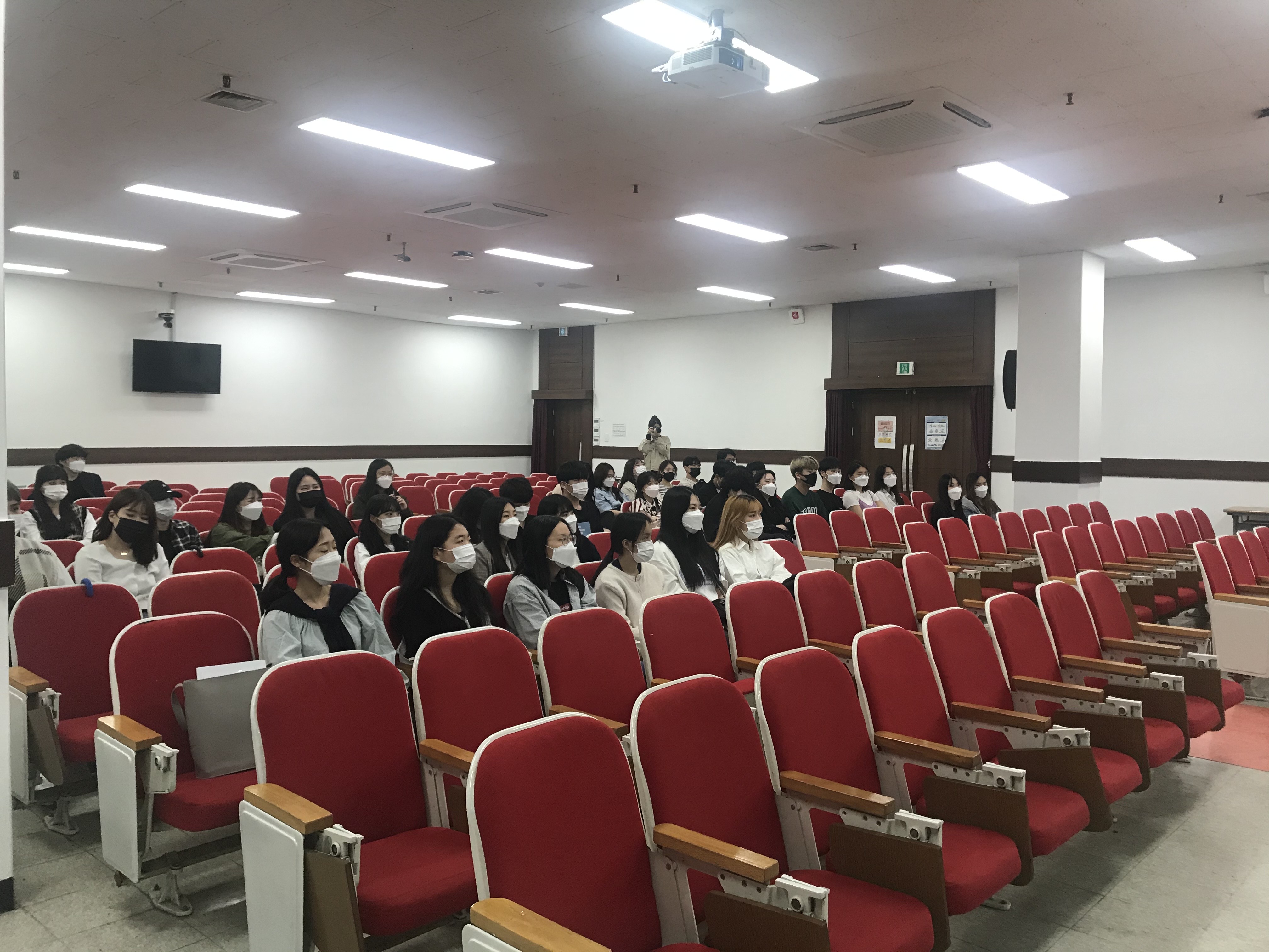 오프라인 신청자가 많아 강의실에서 넓은 강당으로 옮겼습니다.