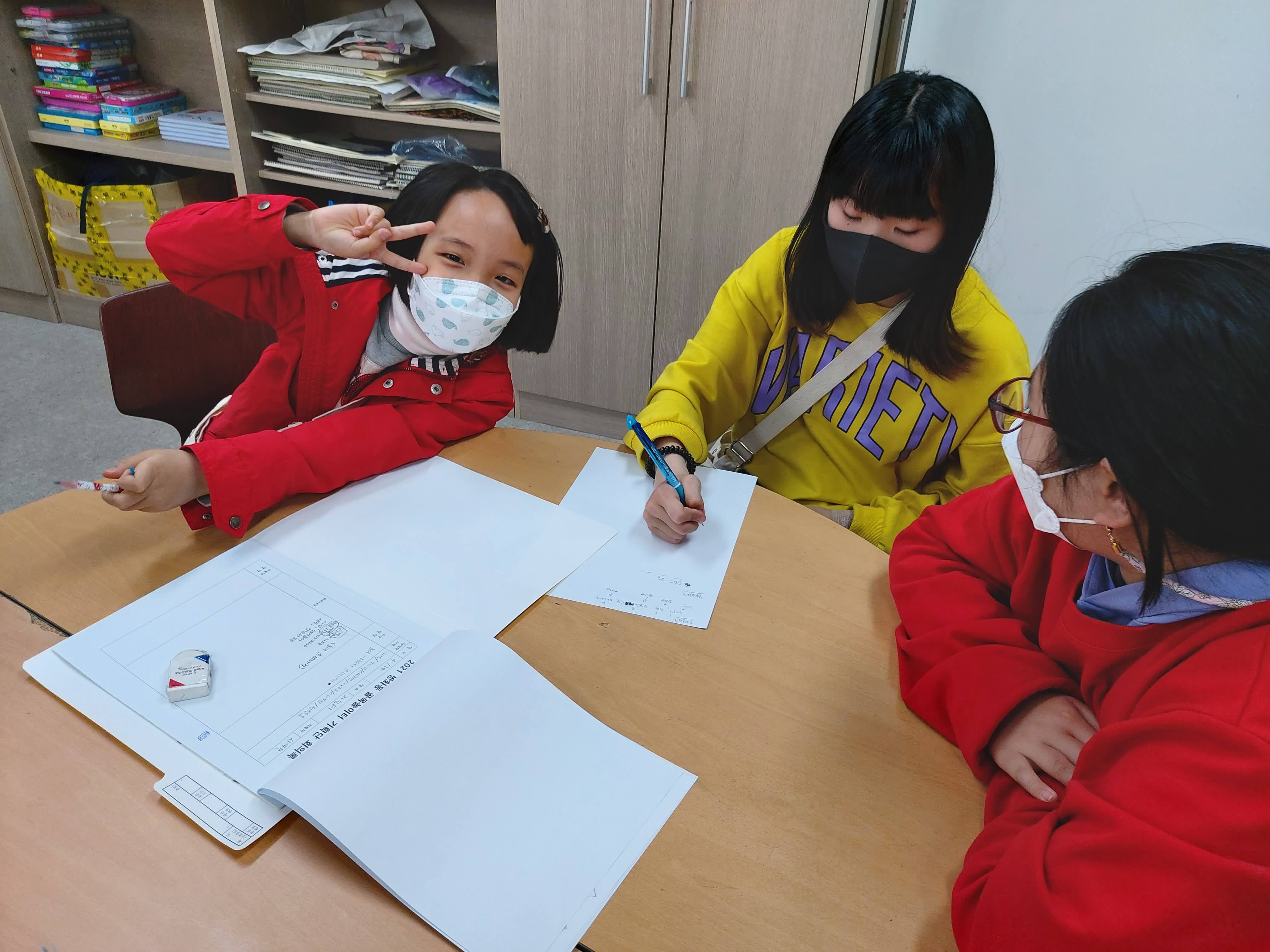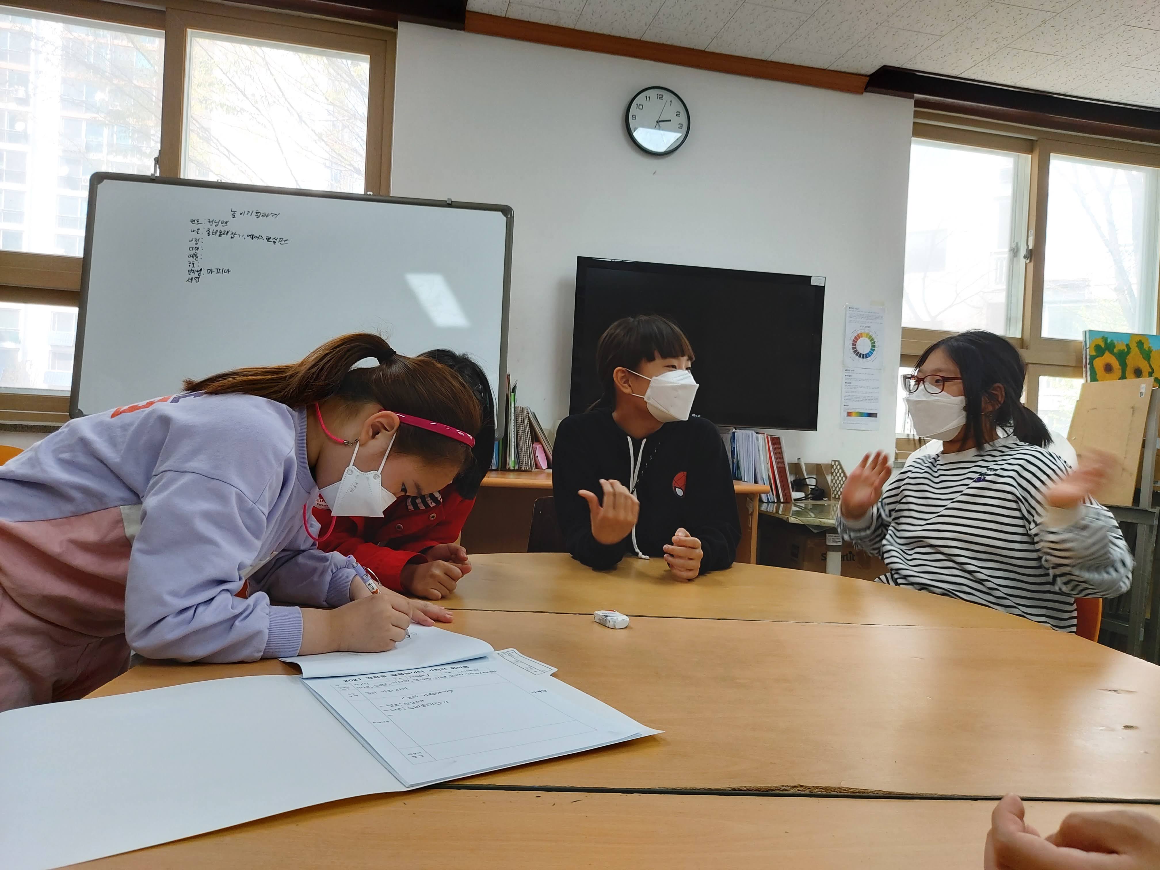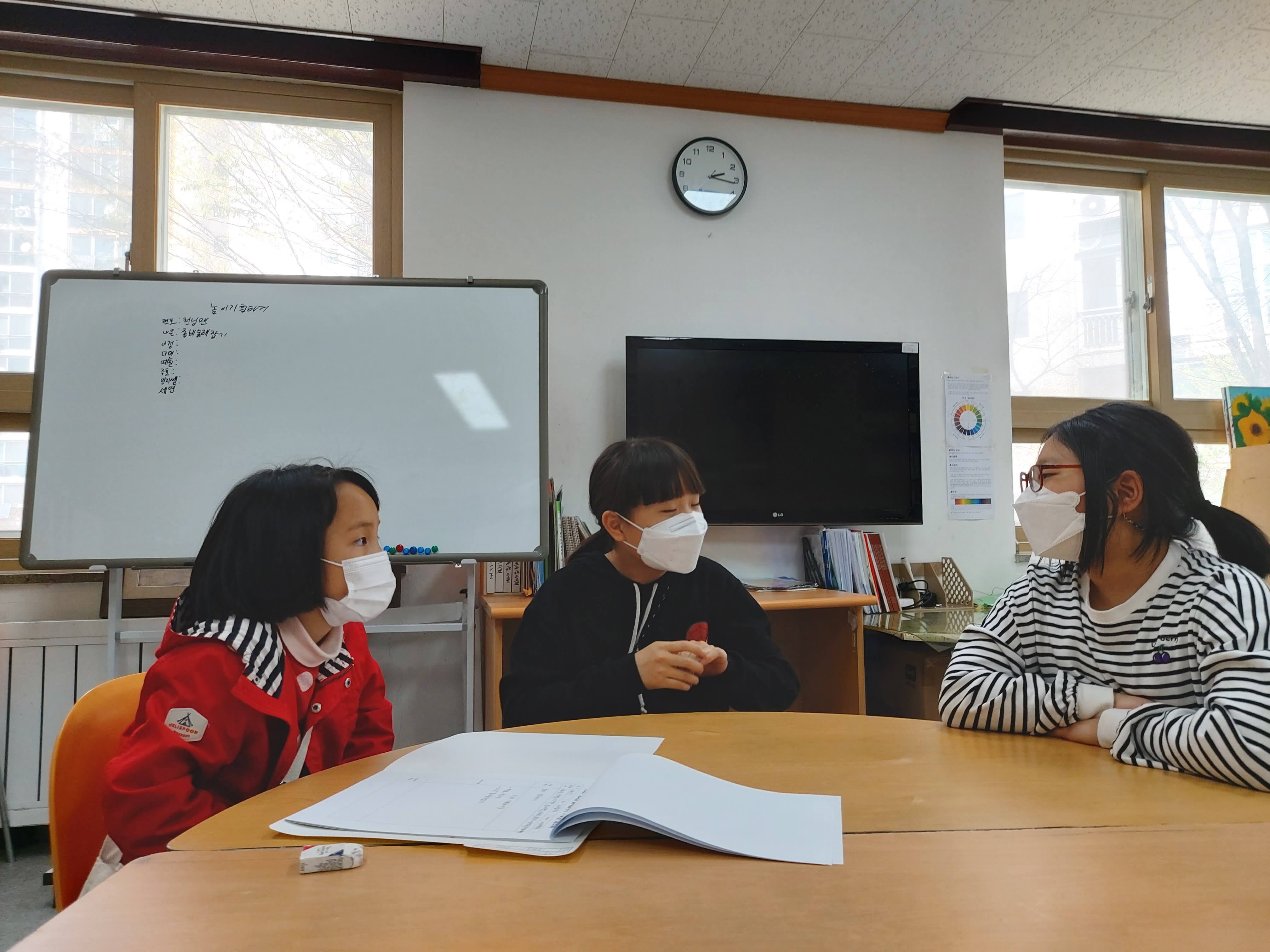 세연, 이정, 예원이네 팀은 서로 하고 싶은 놀이를 하나씩 골고루 이야기하며
