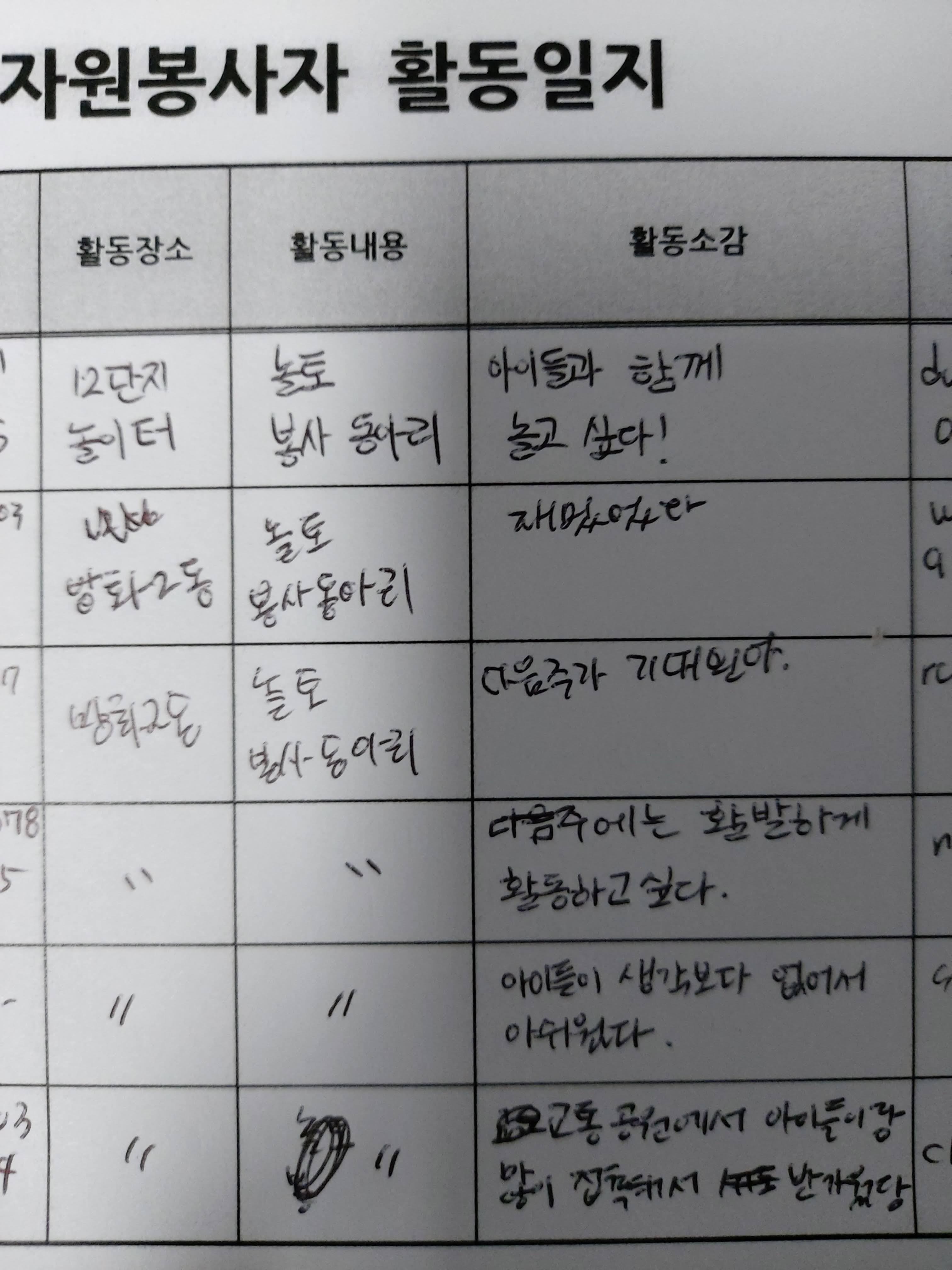 처음에는 아이들과 보호자들이 다가오는 놀토 봉사동아리를