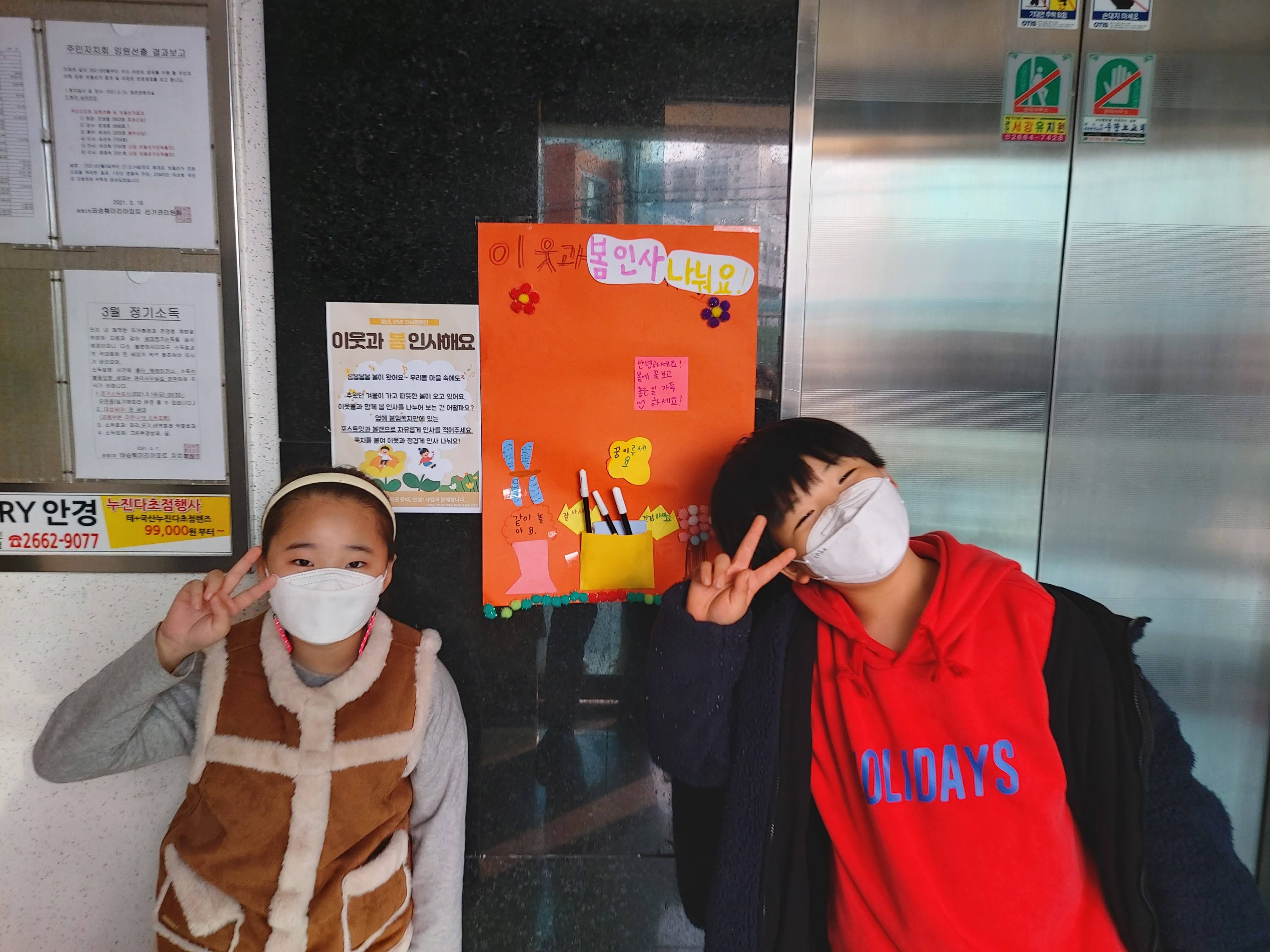 본인이 사는 아파트 이웃들이 서로 봄 인사 나누시게 거들었습니다.